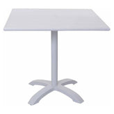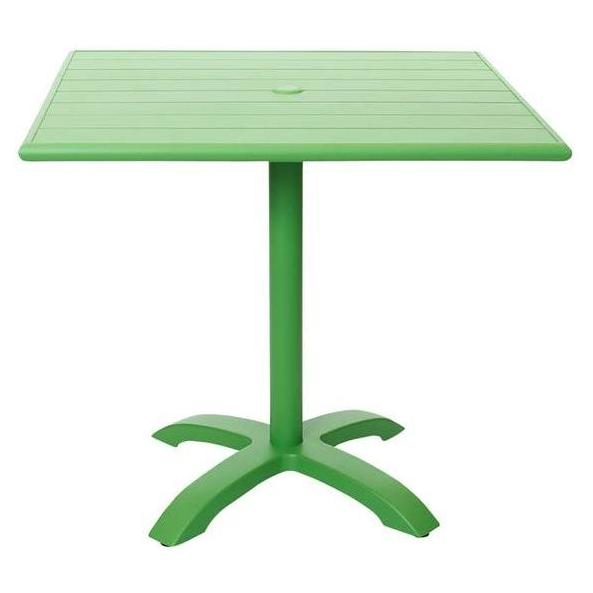 This sleek, outdoor dining height table features a modern design. It is available in white, berry, lime, and citrus powder coat finishes. It has a slatted surface allows rain to drain & sold complete with matching base. It also has adjustable glides. It ships knocked down and requires assembly. It comes with a one-year manufacturer's warranty and our best price guarantee.