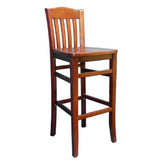 The Beechwood Vertical Slat barstool is constructed to withstand the rigorous conditions of the food industry. Mortise and tenon joints are screwed and glued together, embraced by corner blocks that improves stress flow into the load barring members - the legs. Heavy duty "L" brackets in certain spots to enhance structural stability and prevent the chair from wobbling. Available with a solid saddle seat, veneer seat, or an upholstered vinyl.