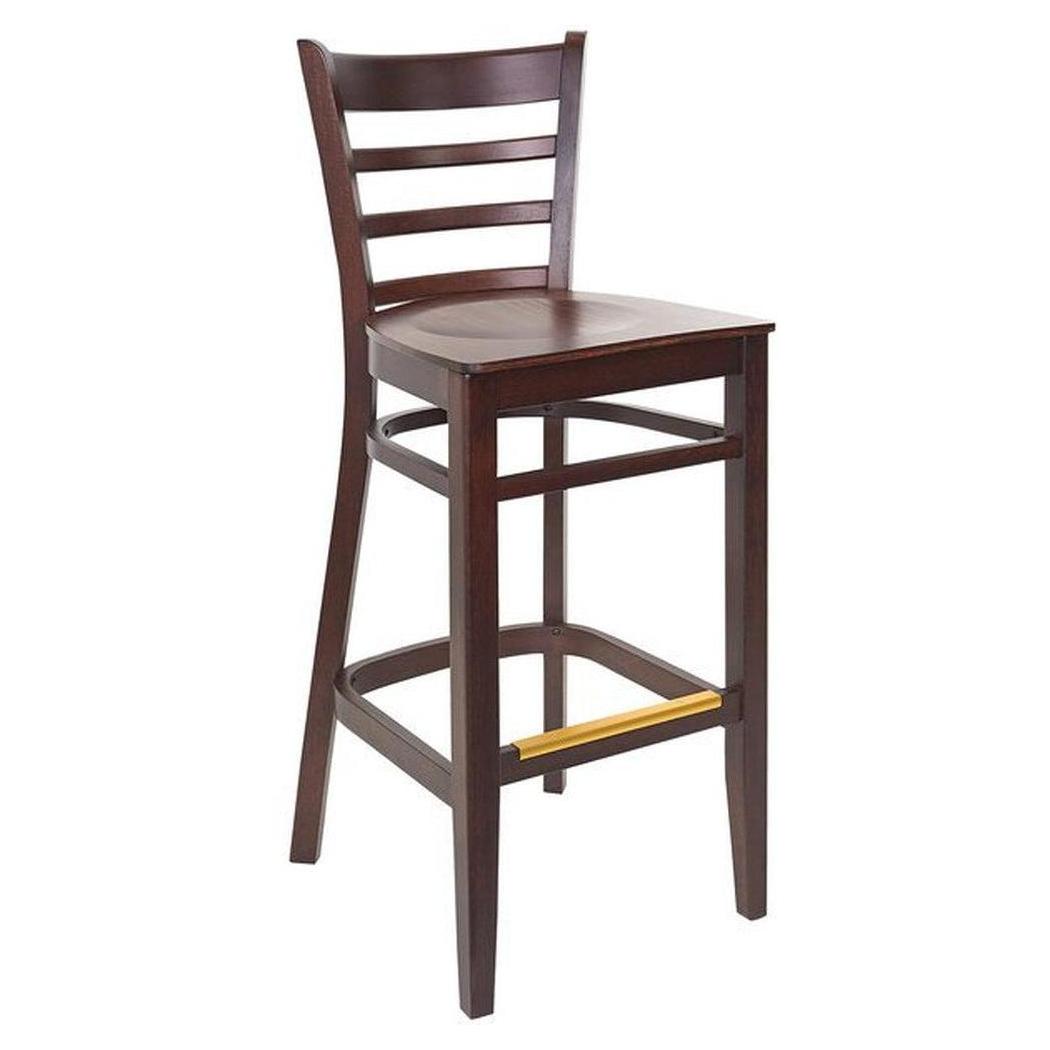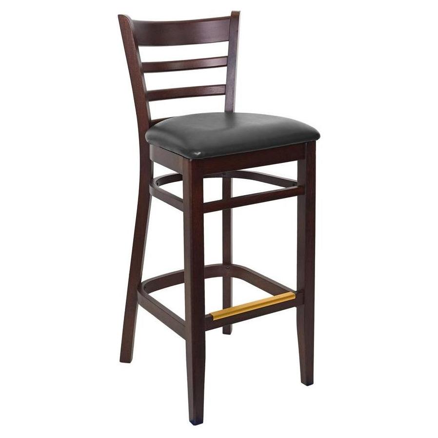 This modern Berkeley Ladder Back Barstool features a classic ladder back design. It is available in black, dark mahogany, natural, dark walnut finish & european manufactured. Upgraded upholstery options available. It comes with a one-year manufacturer's warranty and our best price guarantee.