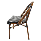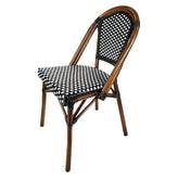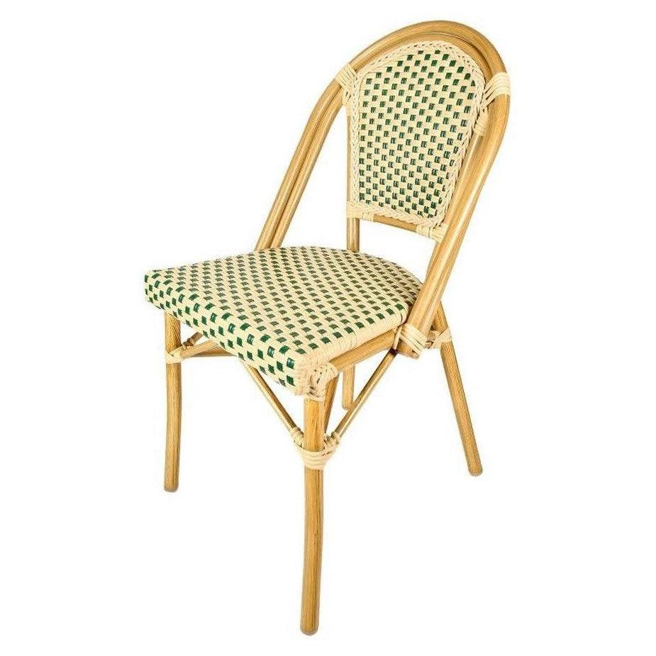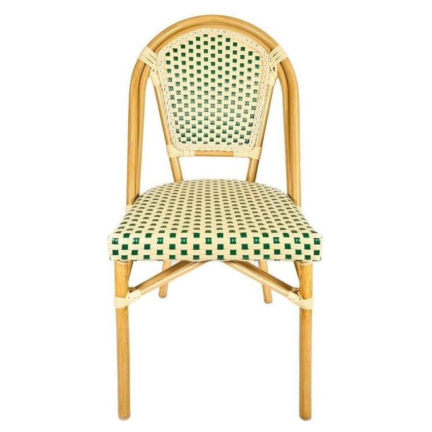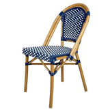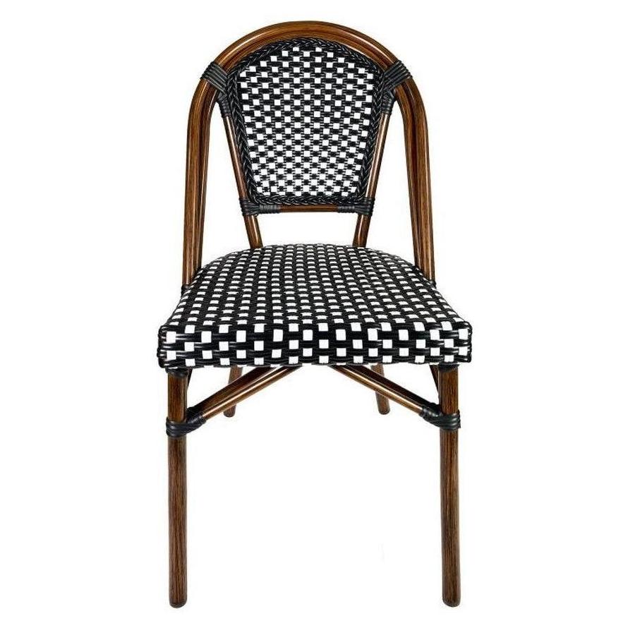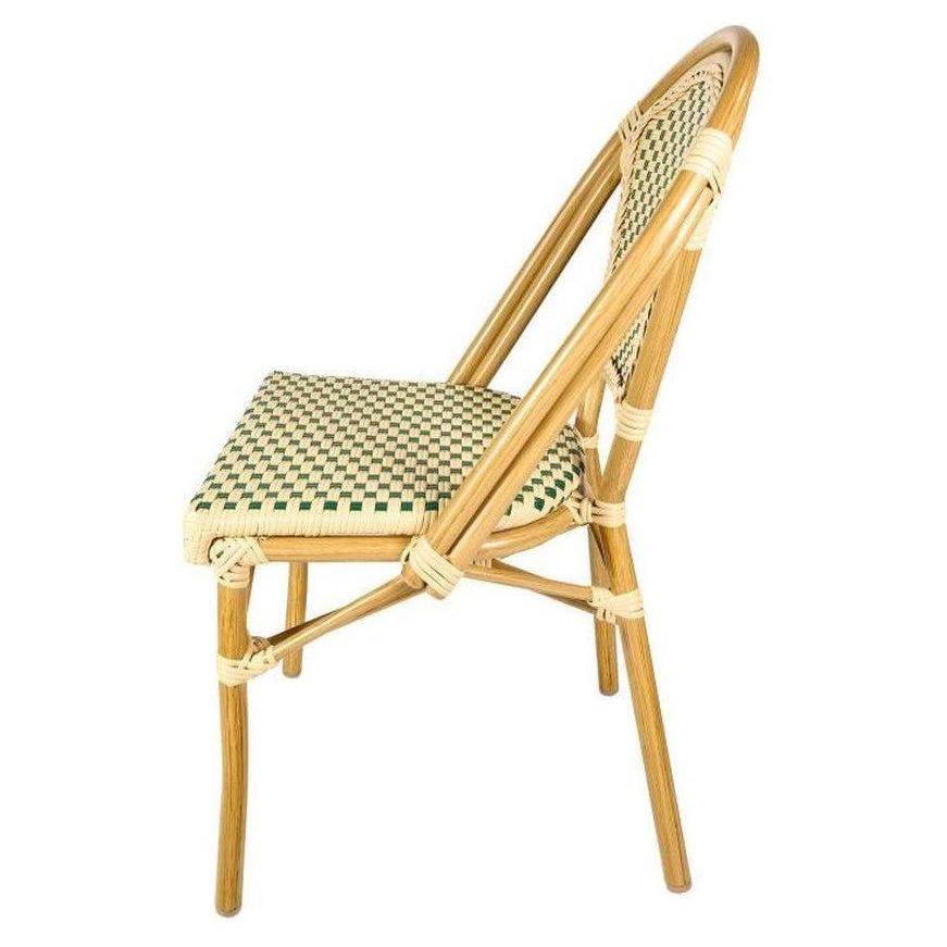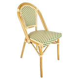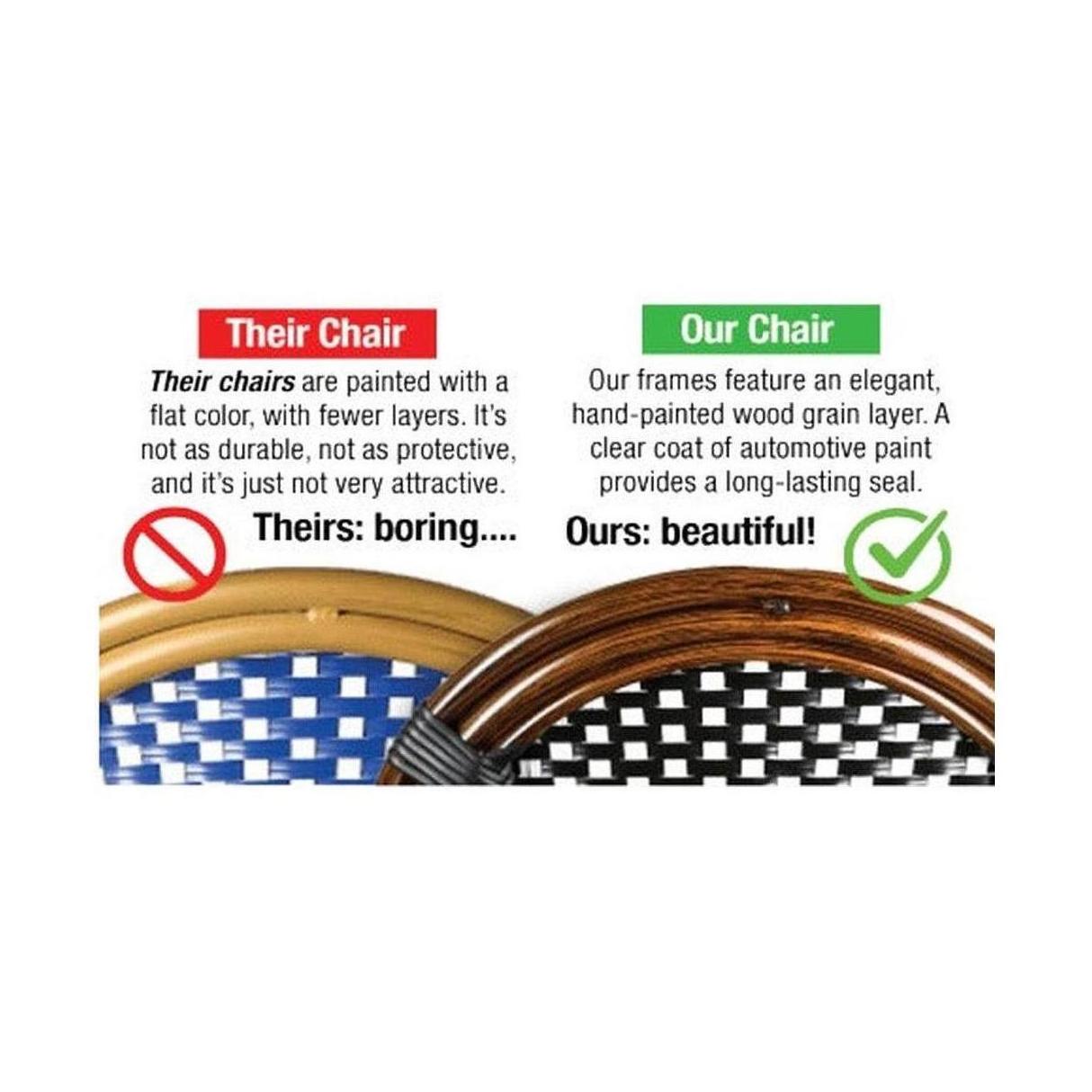 These beautiful French Bistro Chairs feature Marine Grade, UV Treated, hand-woven wicker in a variety of colors providing great comfort and style. The frame is made from rustproof aluminum and painted with a bamboo finish and automotive clear coat. This makes it not only a great looking chair, but a fantastic choice for salty air environments like beach side cafes and yacht clubs.