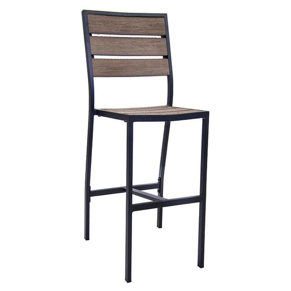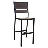 - Outdoor Black Aluminum Bar Stool With Imitation Teak Seat And Back