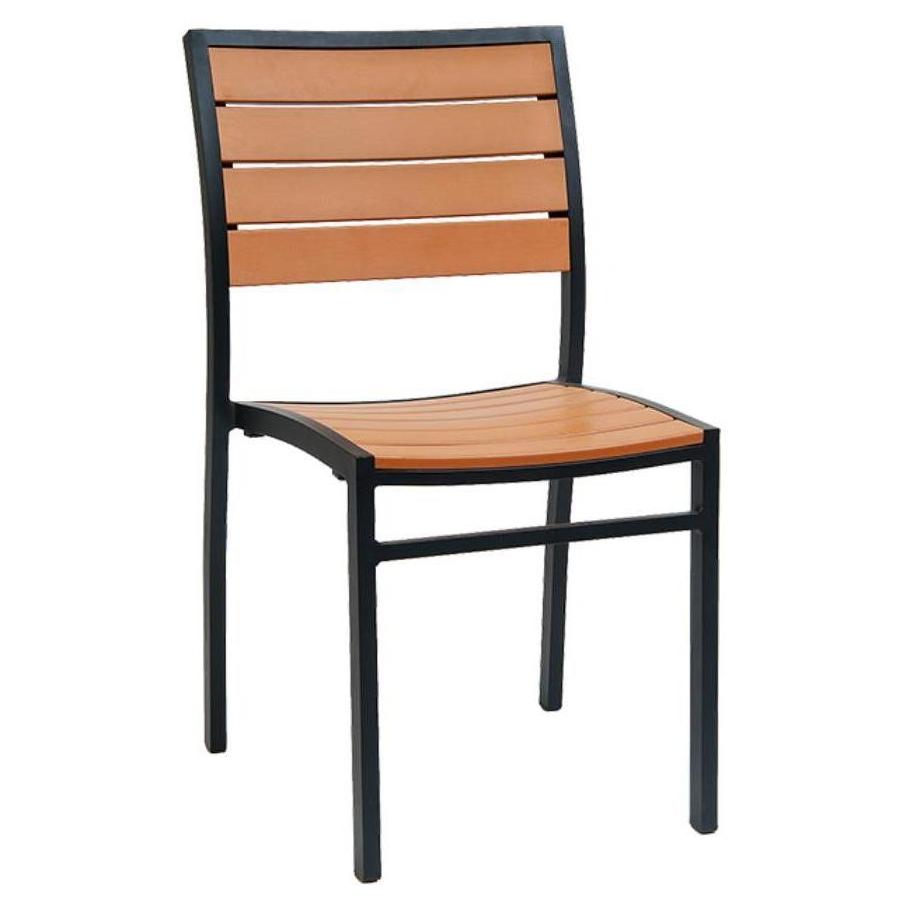 Our Black aluminium Chair With Imitation Teak Slats is of the highest quality, and is designed for commercial grade foodservice needs. This product is protected by our one year product warranty.