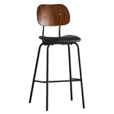 - Black Metal Bar Stool with Oval Veneer Back and Black Vinyl Seat