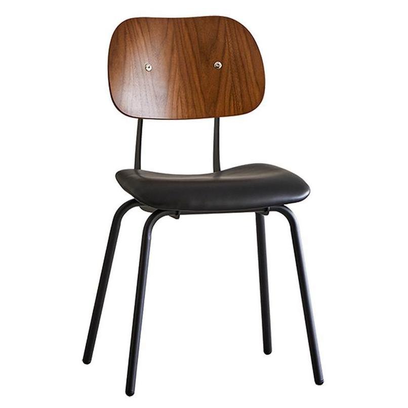 Black Metal Chair with Oval Veneer Back and Black Vinyl Seat