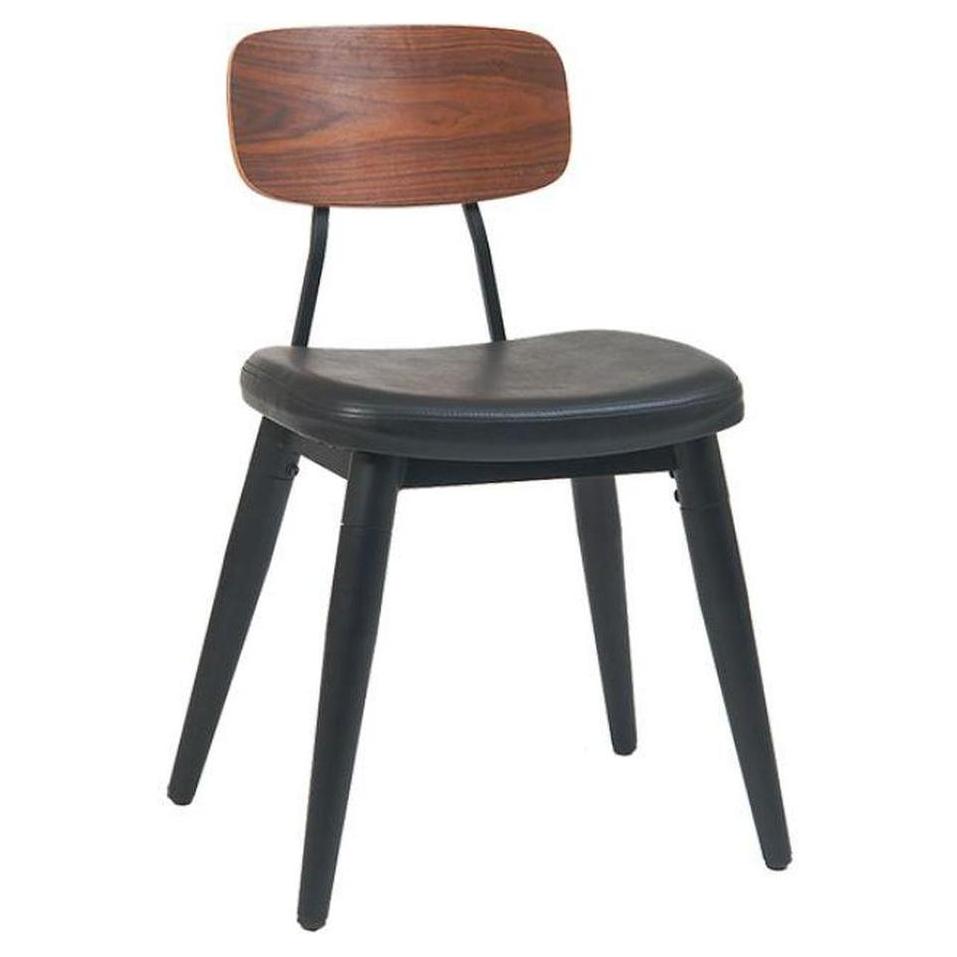 - Black Metal Chair with Veneer Back and Black Vinyl Seat