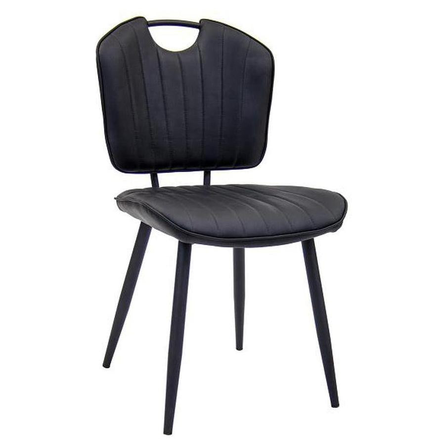- Black Steel Chair with Modern Pleated Black Vinyl Back and Seat