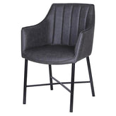 Black Steel Legs Armchair with Dark Gray Vinyl Seat & Stitched Back