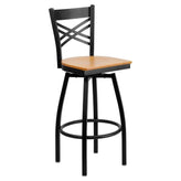 HERCULES Series Black ''X'' Back Swivel Metal Barstool