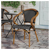 - Bordeaux Outdoor Commercial French Bistro Stacking Chair with Arms