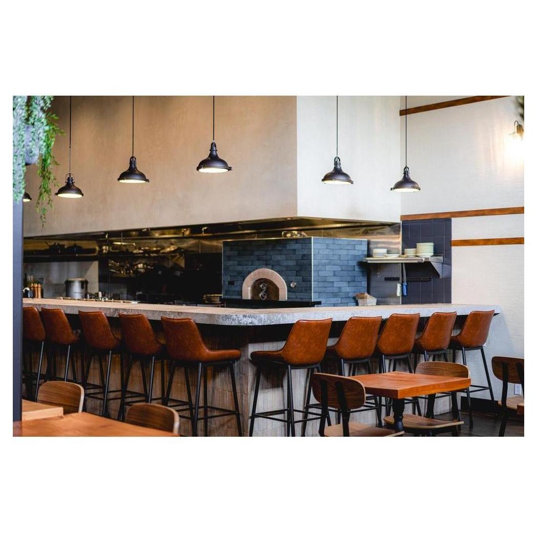 - Pumpkin Brown Vinyl Upholstered Restaurant Bar Stool with Wood Grain Metal Frame