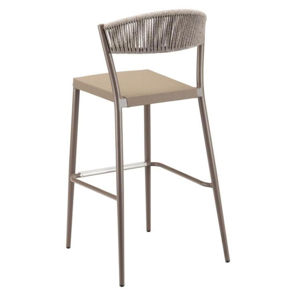 This BRP Outdoor Bar Stool is a commercial grade bar stool designed to last and look great in your food service location. The bar stool works great for modern or contemporary designs. It is made of aluminum, textile and polypropylene rope designed for the moderate price point. This product is protected by our low price guarantee and our customer satisfaction return policy.