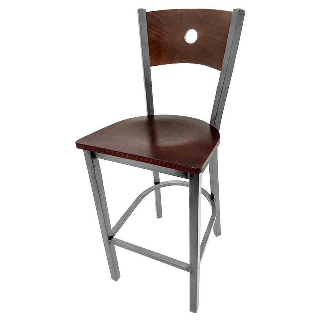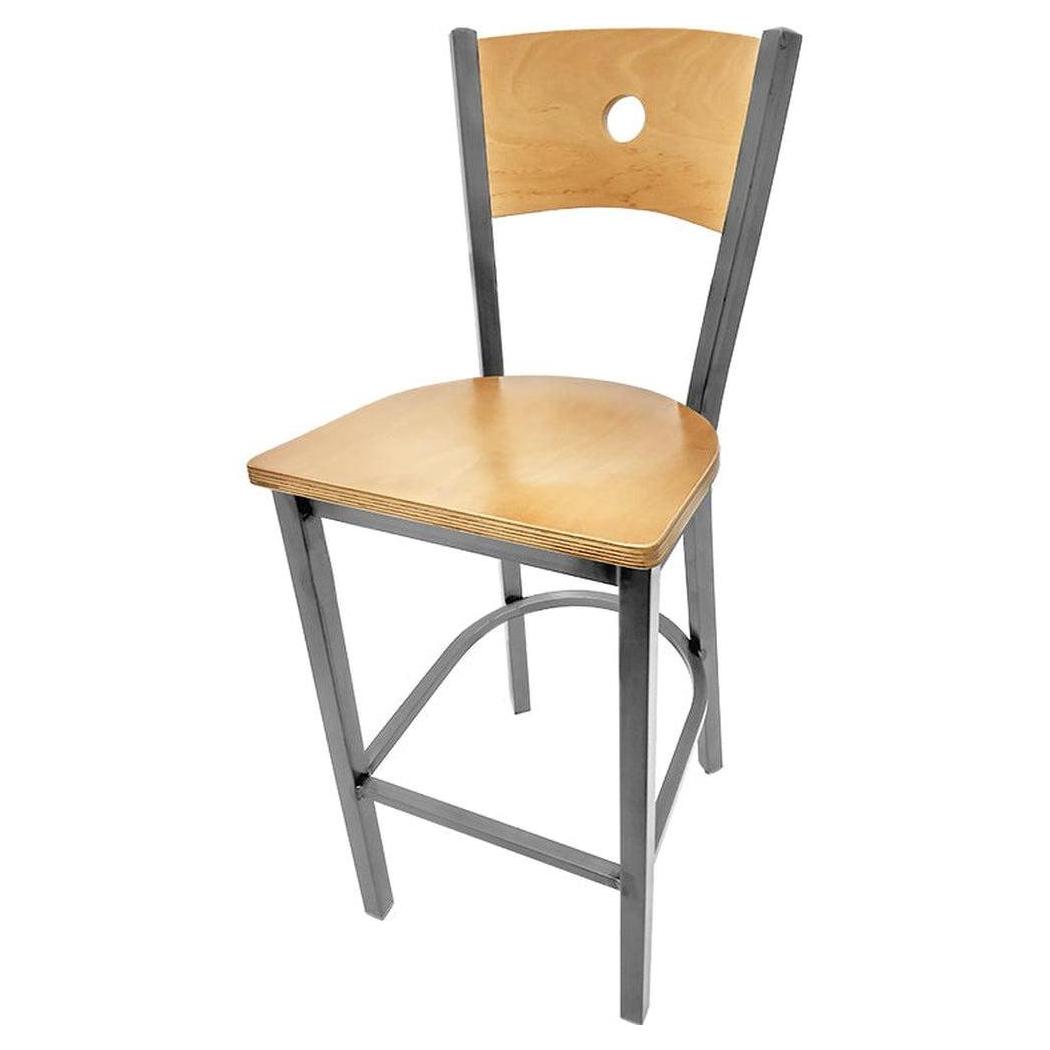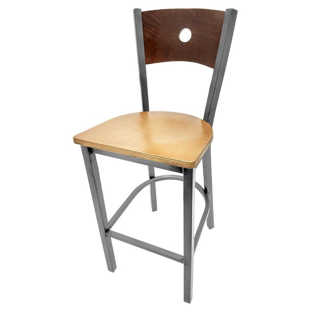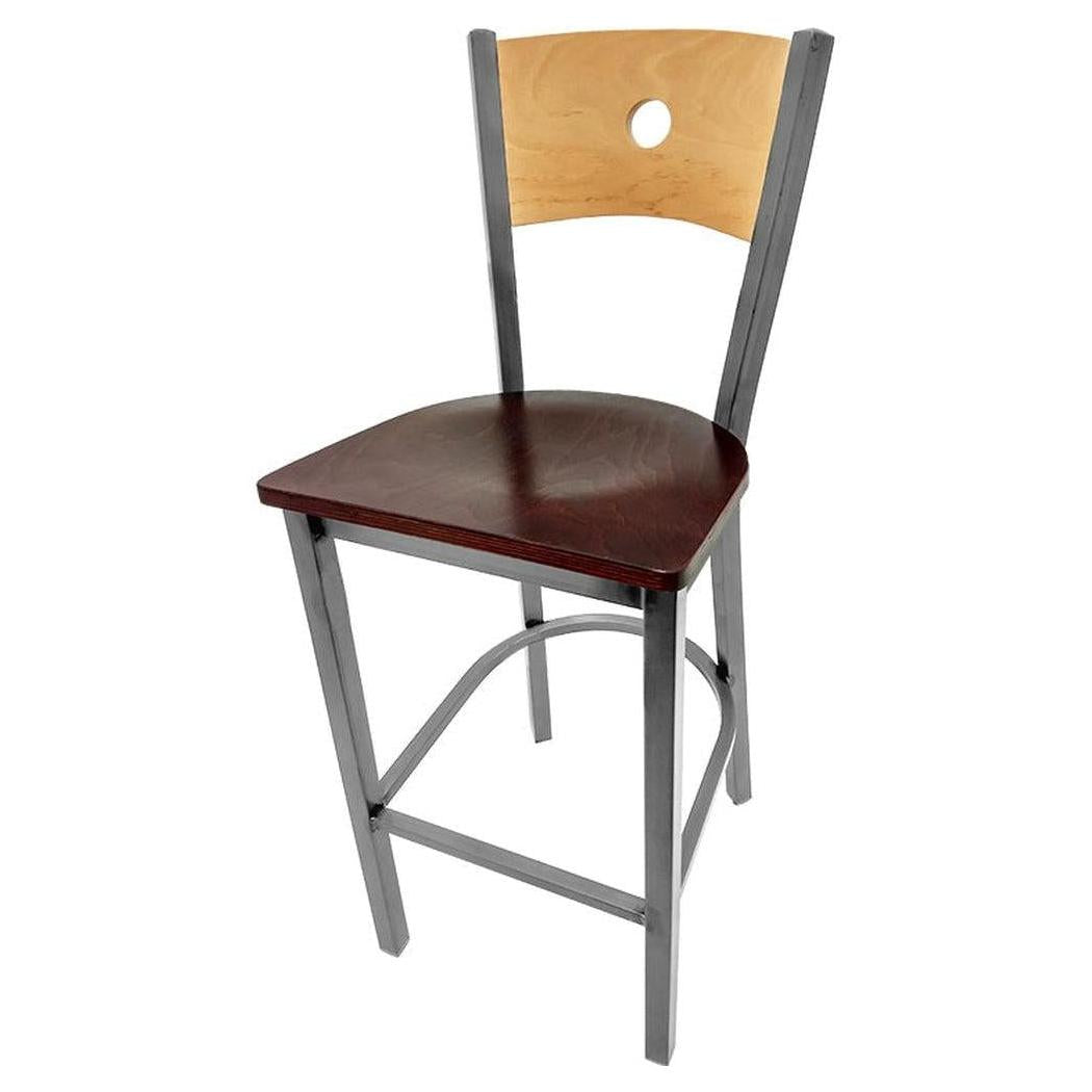 Bullseye Wood Back Barstool with Clear Coat Frame