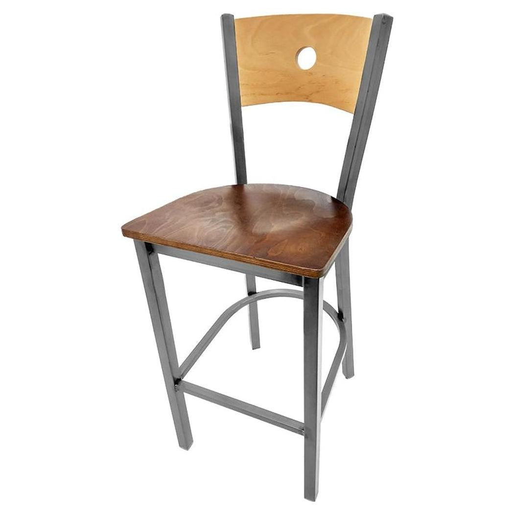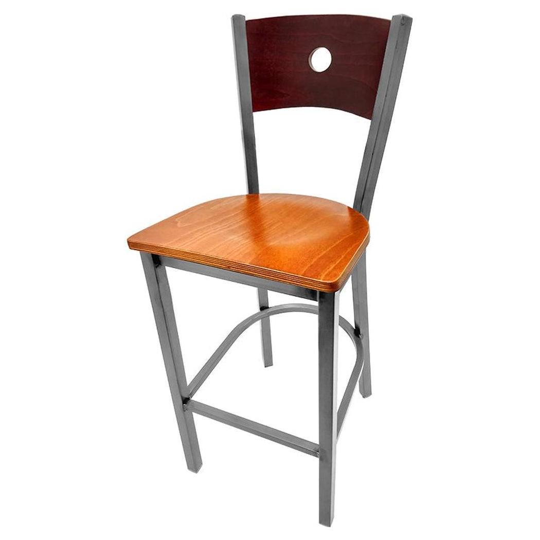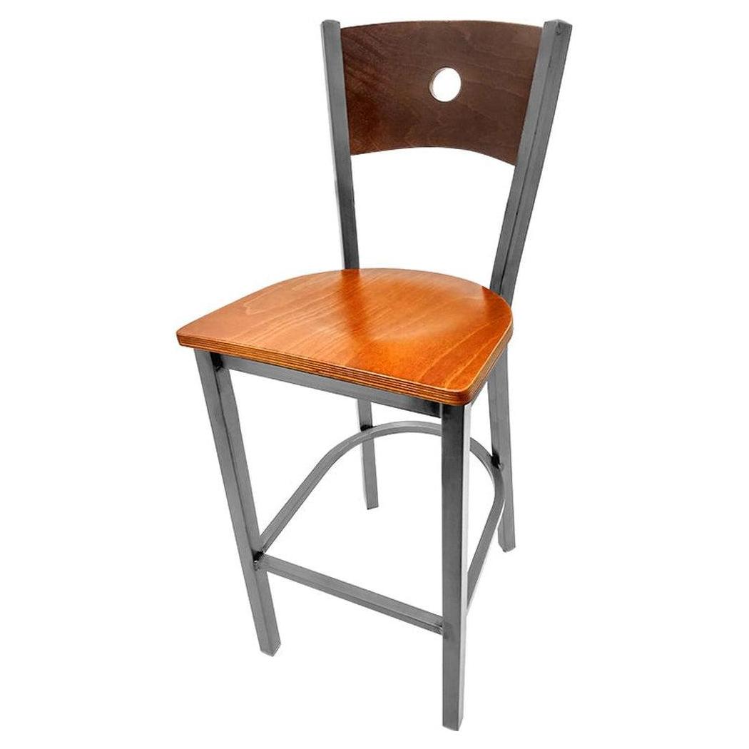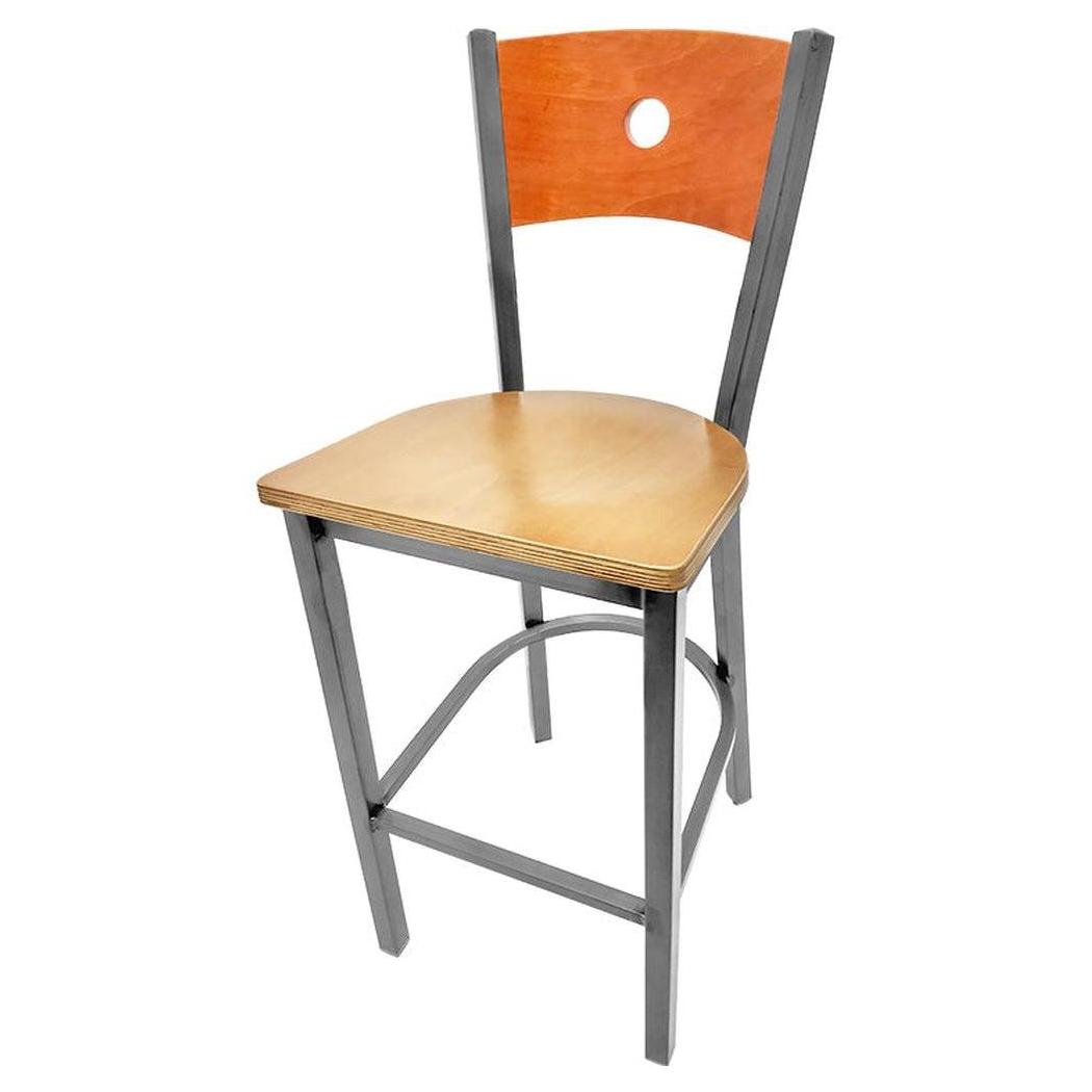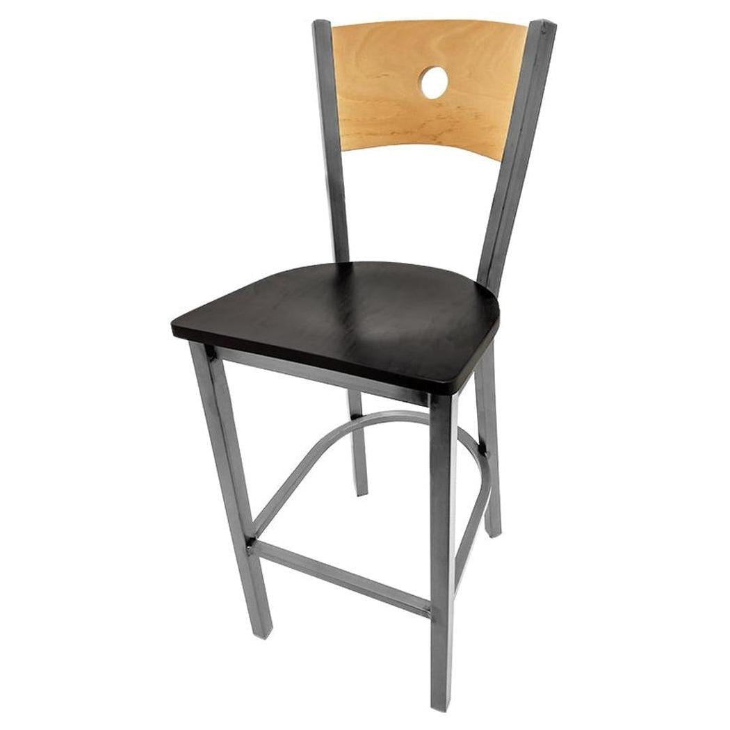 Bullseye Wood Back Barstool with Clear Coat Frame