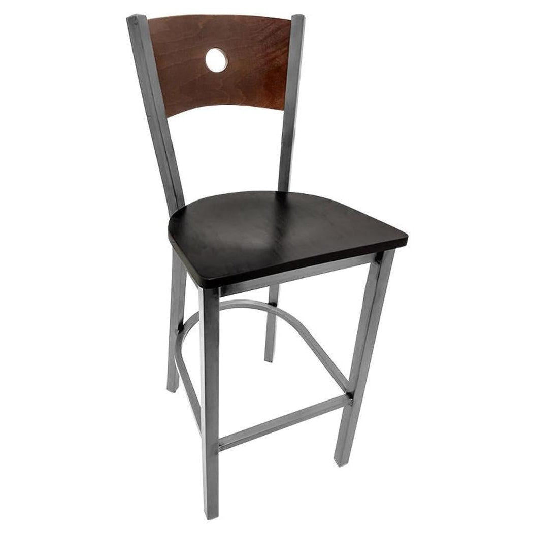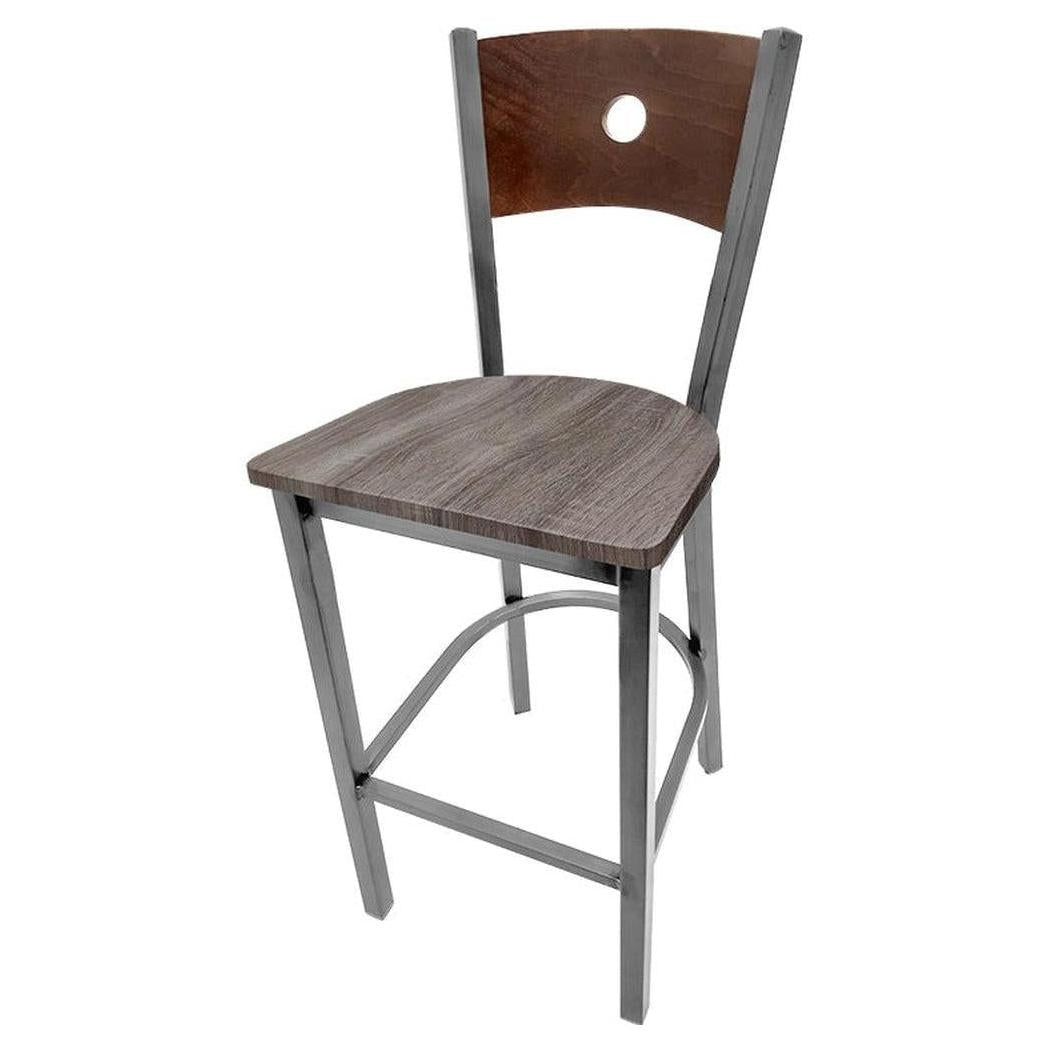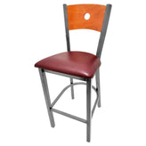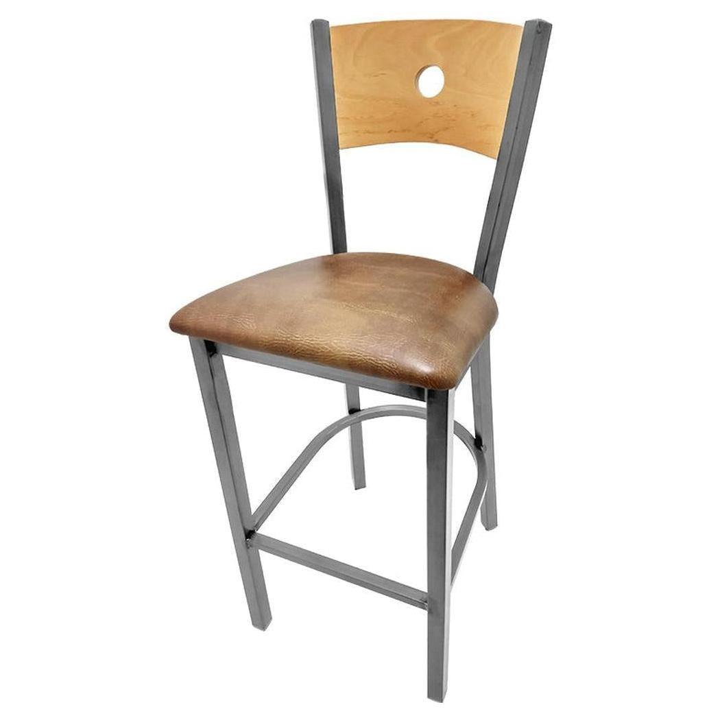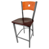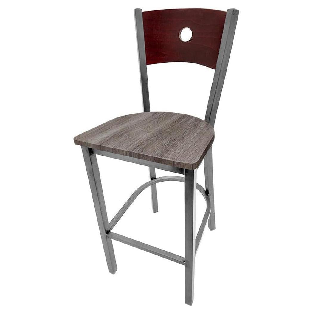 Bullseye Wood Back Barstool with Clear Coat Frame