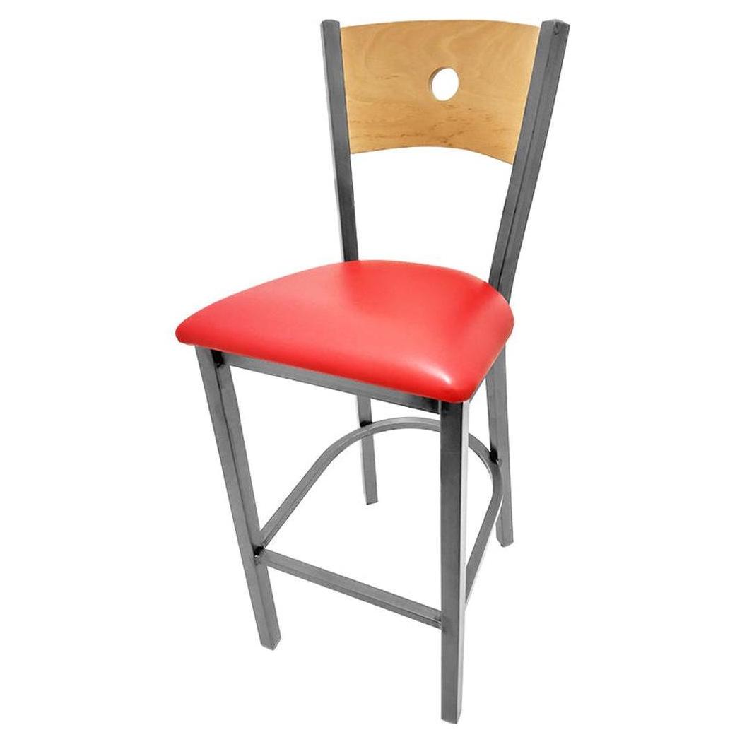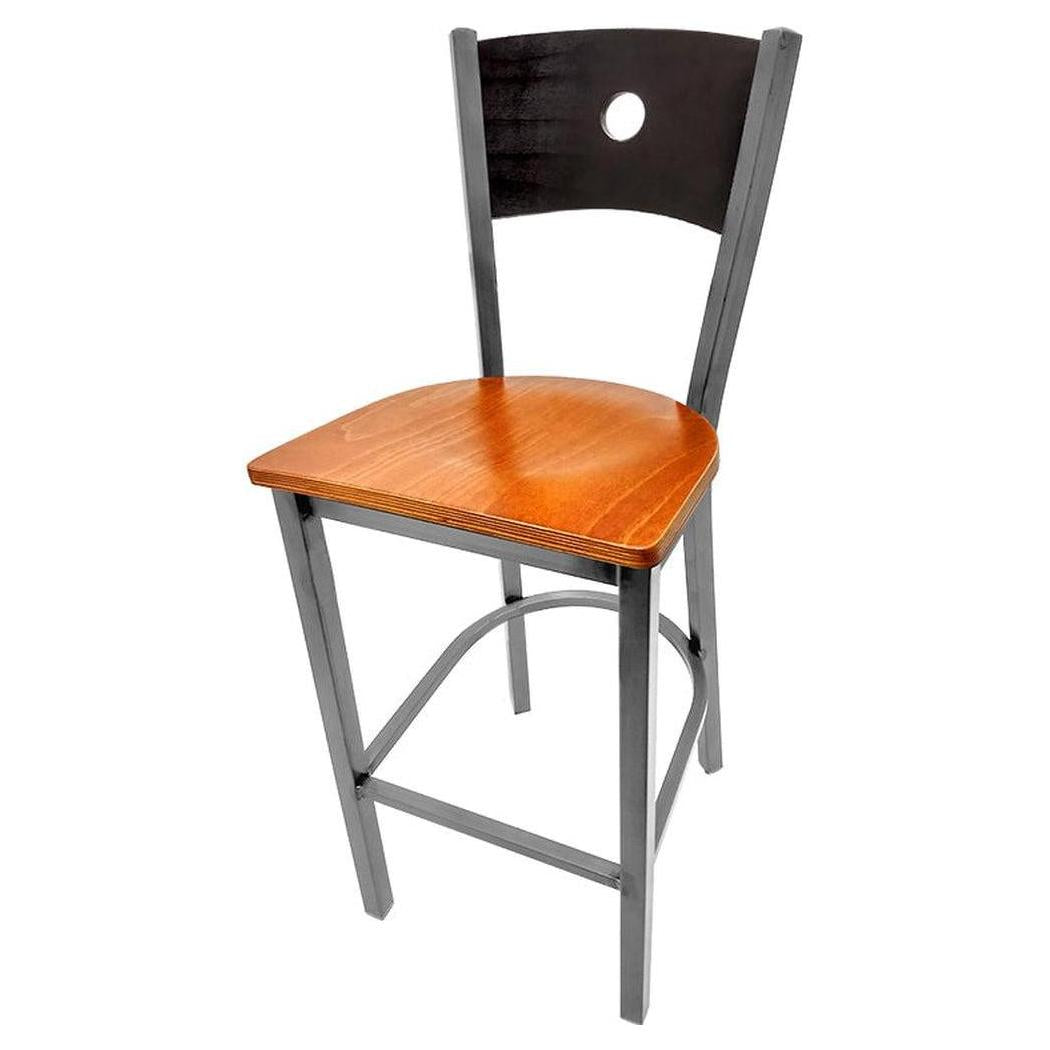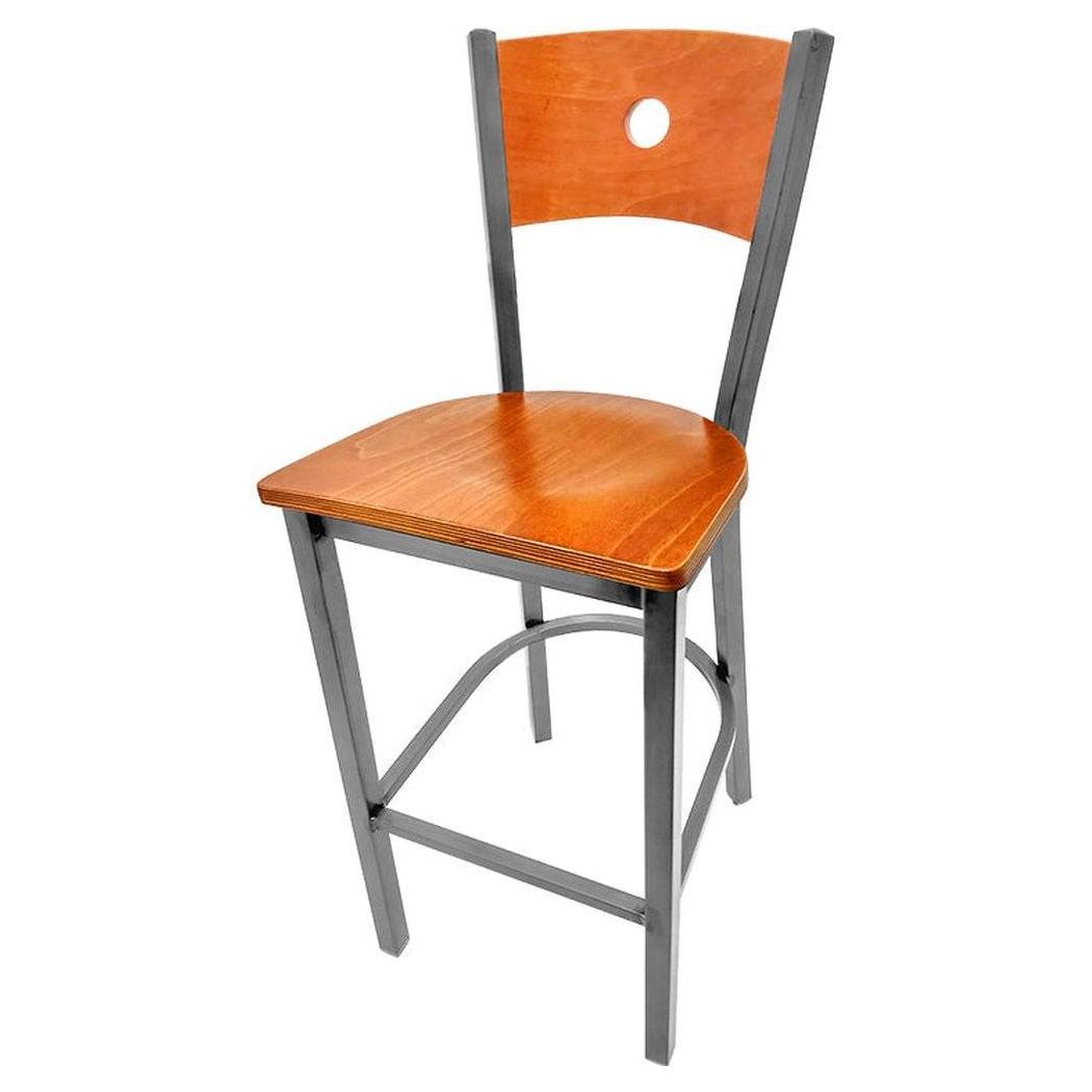 - Bullseye Wood Back Barstool with Clear Coat Frame