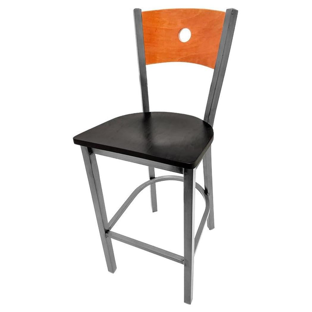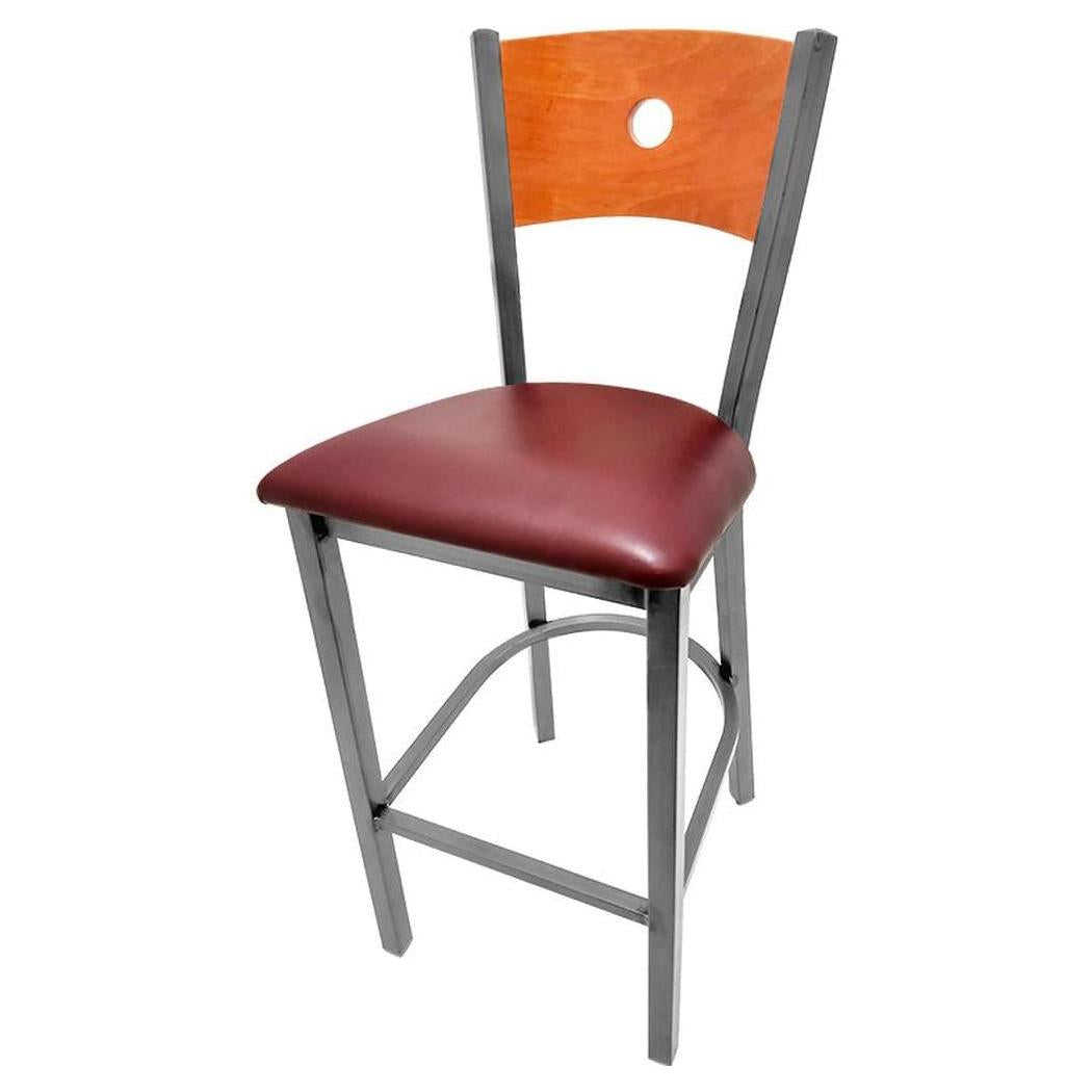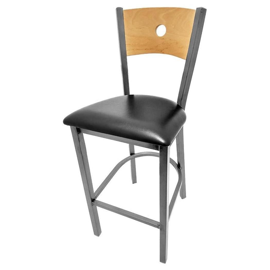 - Bullseye Wood Back Barstool with Clear Coat Frame