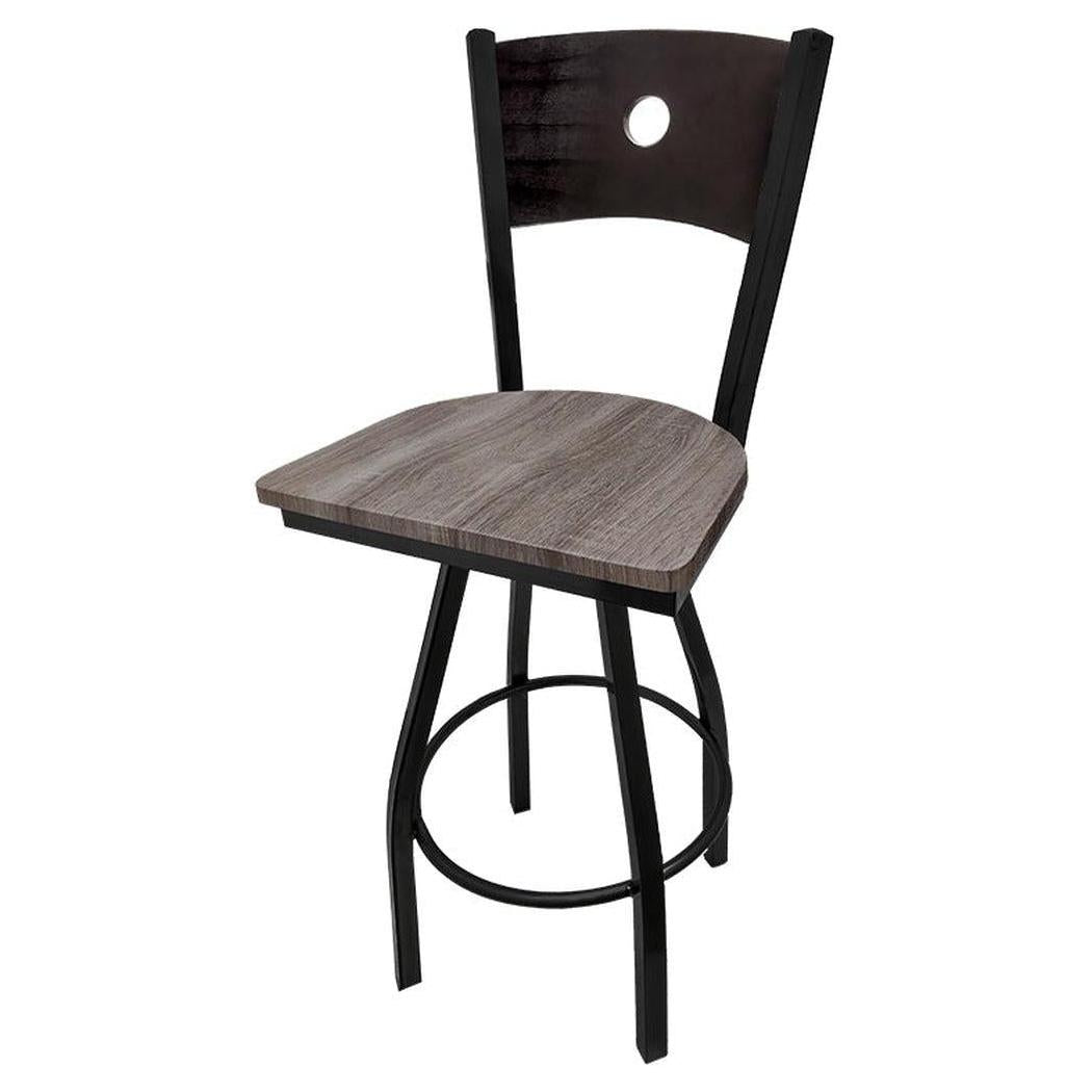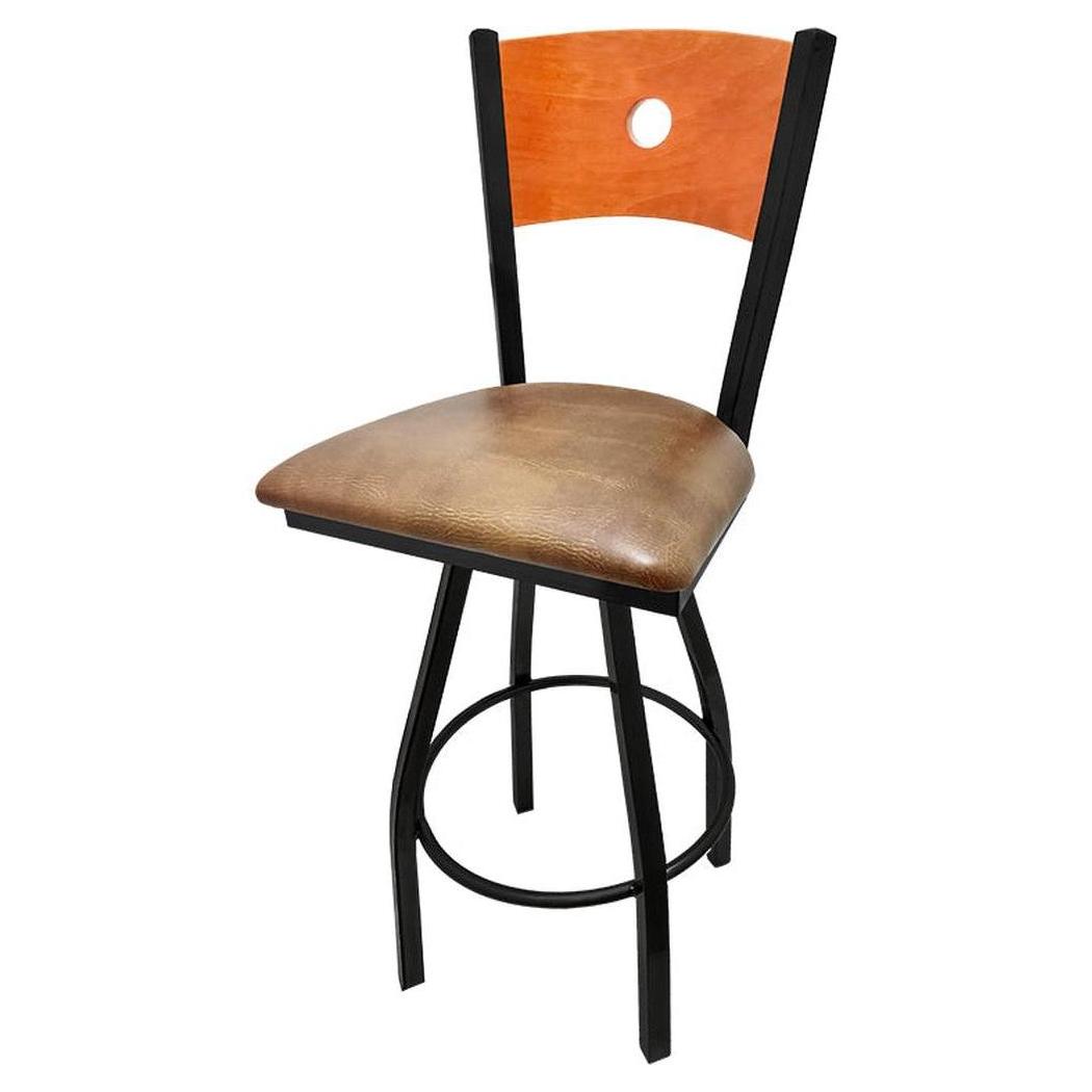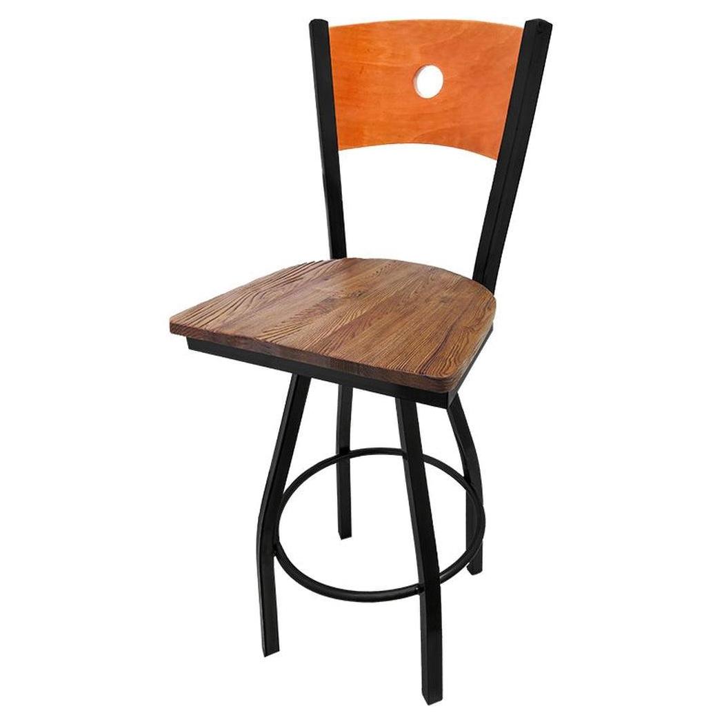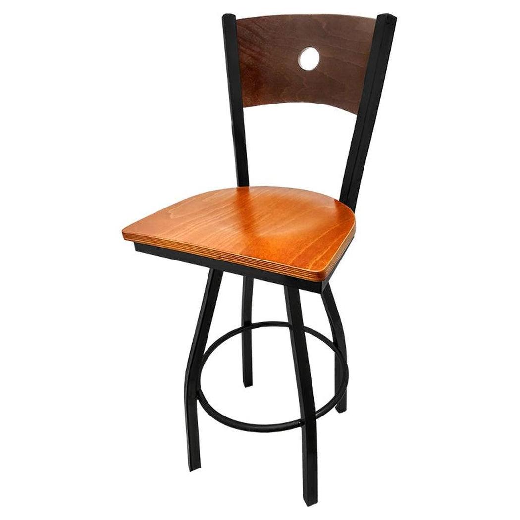 - Bullseye Wood Back Counter Stool with Black Swivel Frame