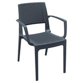 This Capri Resin Dining Arm Chair Brown is a commercial grade chair designed to last and look great in your cafe. This chair works great for modern design. This chair is a stacking chair and is made of highest-quality commercial grade resin designed for the budget price point. This chair comes in brown color. This product is protected by our low price guarantee and our customer satisfaction return policy. Capri Wickerlook resin arm chair with smooth arms. Wickerlook resin is a natural looking un-woven one piece furniture technology. Made with open weave design that resembles traditional woven wicker furniture. Will never unravel. No metal parts to rust, no moving parts that can break. Made for commercial durability. Perfect for hotels and restaurants. UV treated. Hose down for cleaning. Withstands outdoor temperatures summer and winter. |