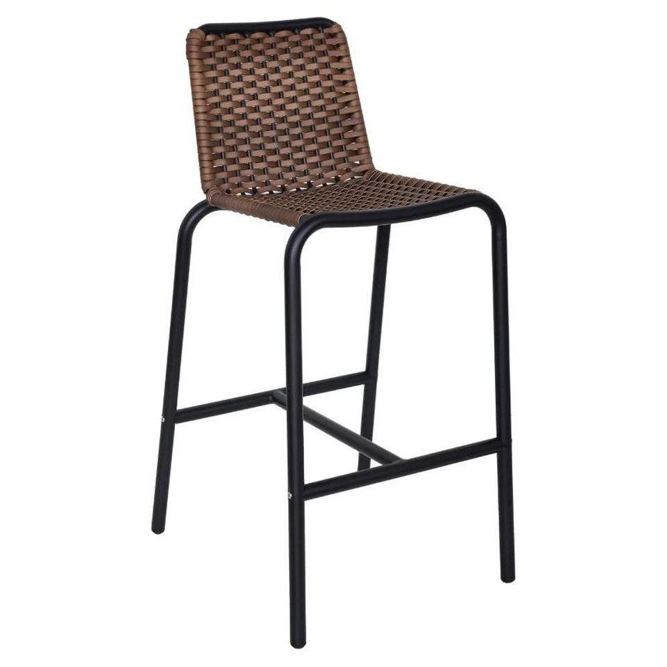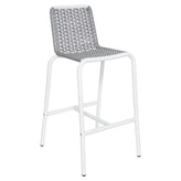 with durable woven synthetic rope seat and back. Available in stacking side and armchair, and non-stacking armless barstool. White or black frame.
