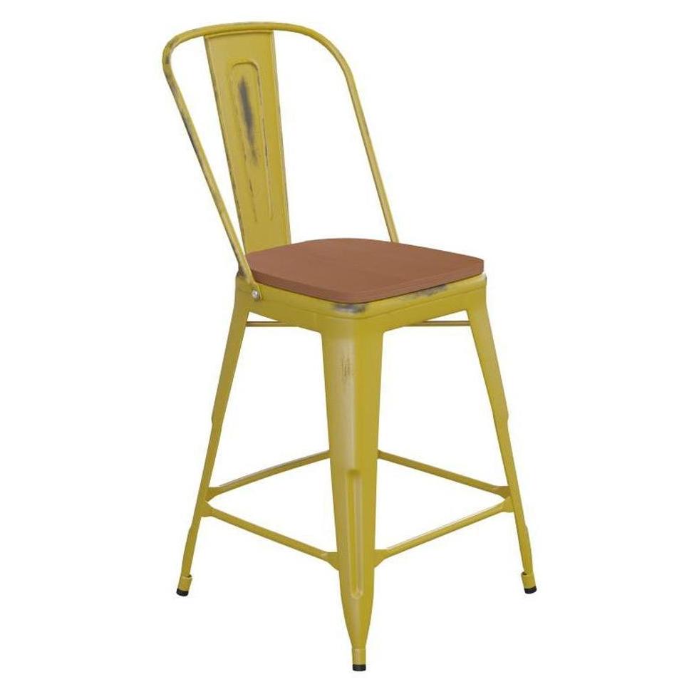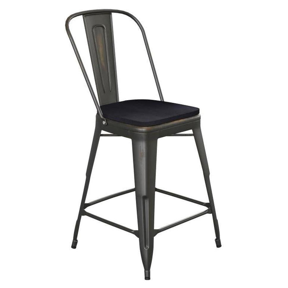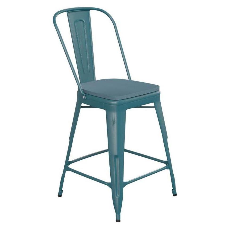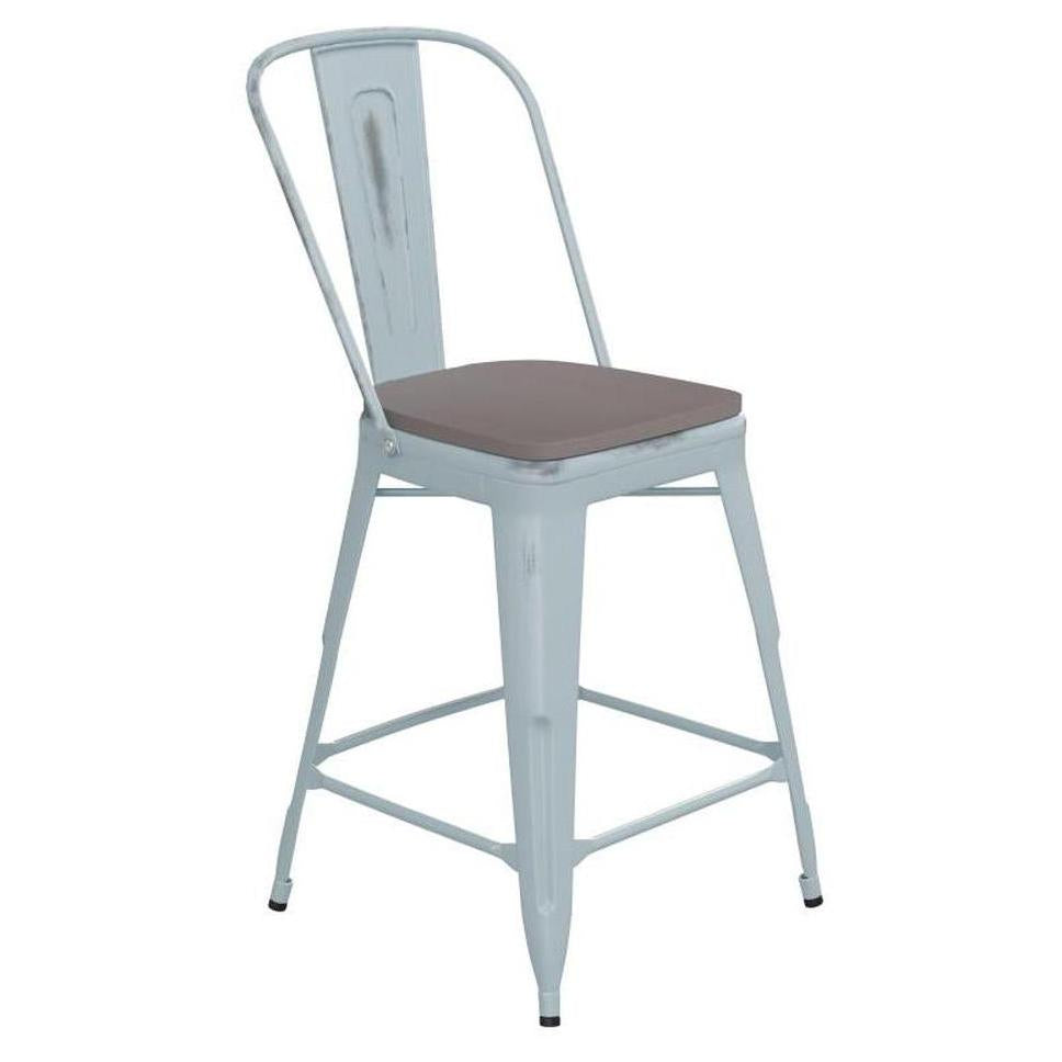 - Carly 24" High Metal Counter Height Outdoor Stool with Back and Poly Resin Seat