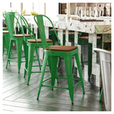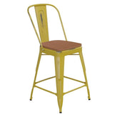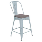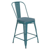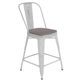 Carly 24" High Metal Counter Height Outdoor Stool with Back and Poly Resin Seat