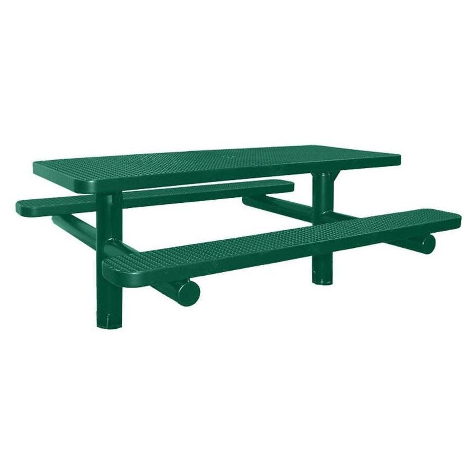 The Champion style 6-foot double pedestal in-ground picnic table is a customer favorite! Because of the in-ground two-post frame design, this table is extremely sturdy! The diamond-shaped openings of the expanded metal mean that surfaces will dry quickly after rain. What’s more, a thick layer of UV stable, mold-resistant plastisol completely coats the entire product. This coating protects it from harsh environmental elements.