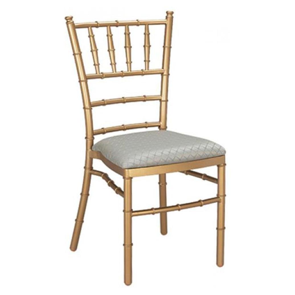 Our Chiavari Gold Metal Dining Chair is of the highest quality, and is designed for commercial grade foodservice needs. Call to see if this product is available in other color or size options. This product is protected by our one year product warranty.