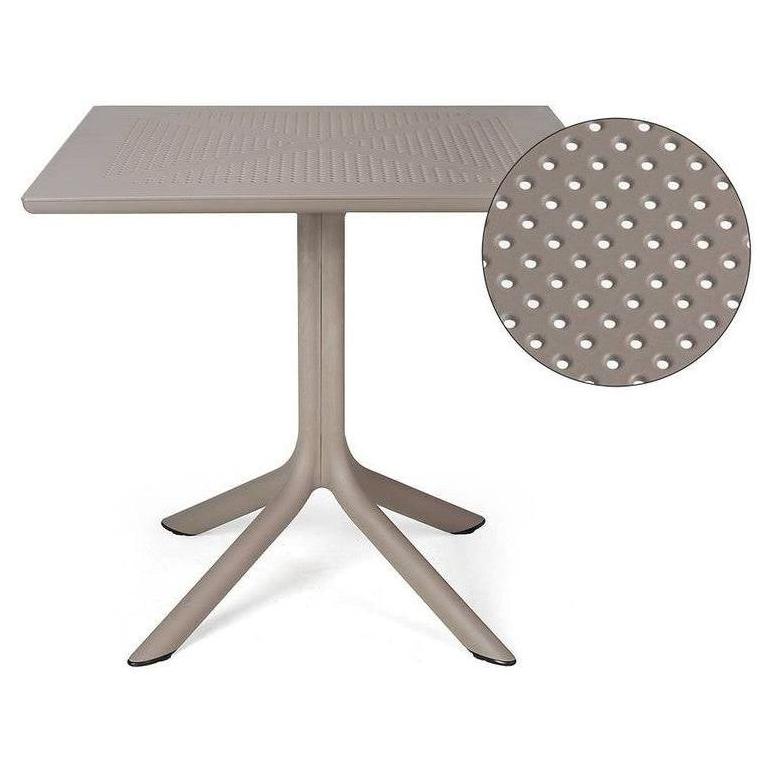 Table with center column and 4 spokes. Material: DurelTOP in fiberglass polypropylene with UV additives and uniformly colored. Matt finish. Adjustable height feet. Recyclable resin.