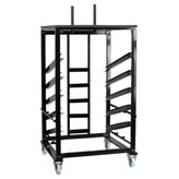This Cocktail Table Dolly for 30'' Round Table is designed to last and look great in your restaurant. It is made of Metal, Rubber, Steel. This product is backed by our customer satisfaction return policy and our best price guarantee. The dolly features sloped shelves that will prevent them from sliding out of the dolly. The upholstered fabric platform top holds your bases and prevents the finish from being scratched. You can easily roll this cart on a truck to transport to different events. |