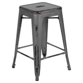 - Commercial Grade 24" High Backless Distressed Silver Gray Metal Indoor-Outdoor Counter Height Stool