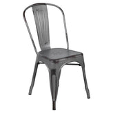 - Commercial Grade Distressed Silver Gray Metal Indoor-Outdoor Stackable Chair