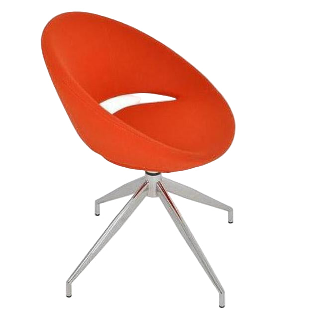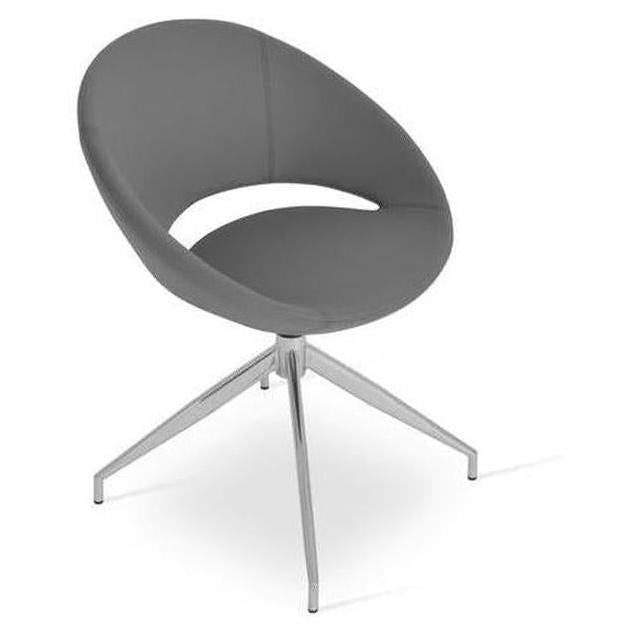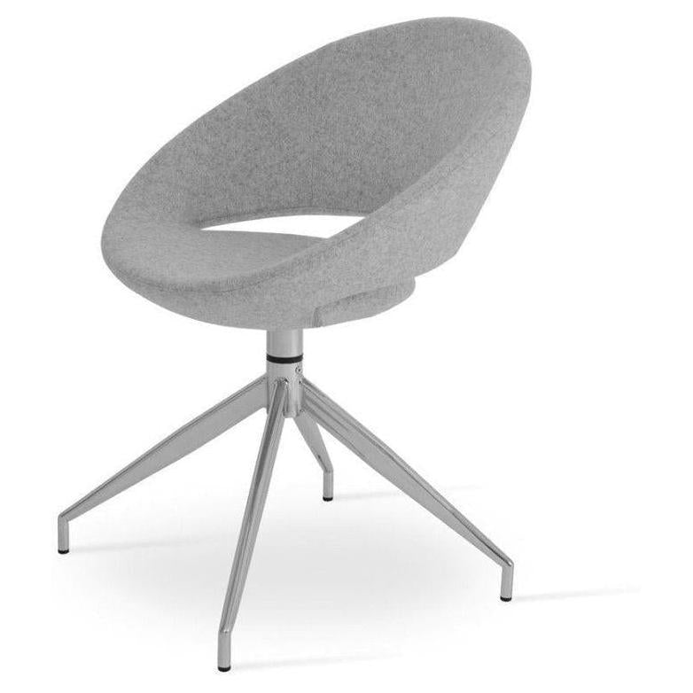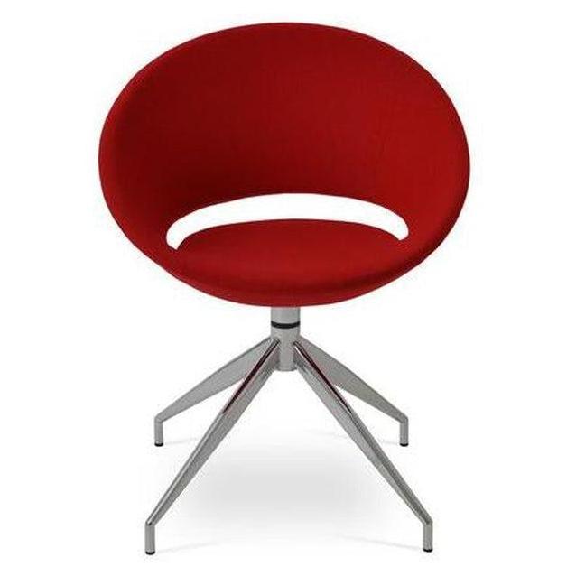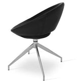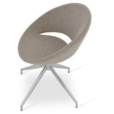 Crescent Spider is a unique dining chair with a comfortable upholstered seat and backrest on a black coated steel base. Each leg is tipped with a plastic glide screwed into the foot. The seat has a steel structure with S shape springs for extra flexibility and strength. This steel frame is molded by injecting polyurethane foam. Crescent seat is upholstered with a removable zipper enclosed leather, PPM, or wool fabric slip cover. This contemporary chair is suitable for both residential and commercial use. Crescent Spider is designed by Tayfur Ozkaynak. For use on carpet, please make sure to utilize a suitable chair glide that meets your carpet manufacturer's recommended standards. |