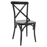 This Cross Back Seat Steel Chair is a commercial grade chair designed to last and look great in your restaurant. The chair fits in nicely for restaurants desiring a traditional design. It is made of wood and steel. The antique is offered. The product is backed by our customer satisfaction return policy and our best price guarantee.