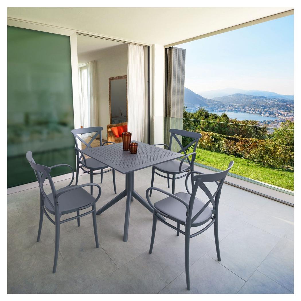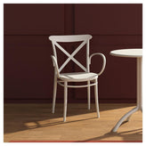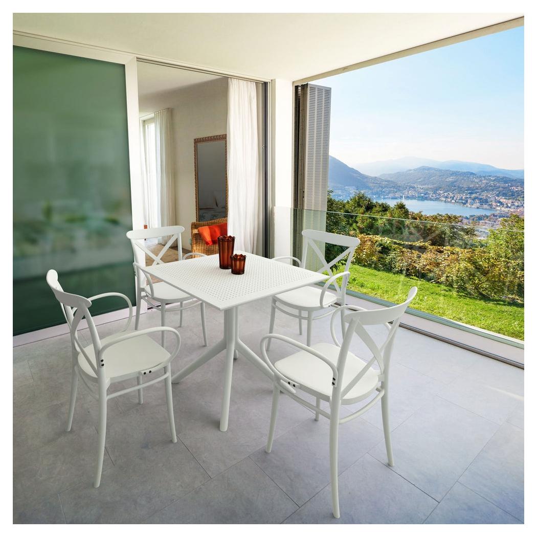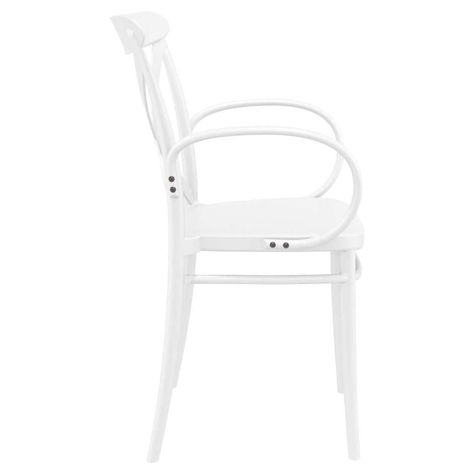 Resin indoor outdoor arm chair is made from marine grade polypropylene. Great for outdoor spaces, patios and decks. Used by restaurants, cafes and hotels. High quality commercial grade resin furniture - featuring refined designs, that are weatherproof, comfortable, and functional. Preferred for heavy use areas, pool sides, patios, beach and balcony use. Items are resistant to UV, salt, weather, sun tanning oils. |