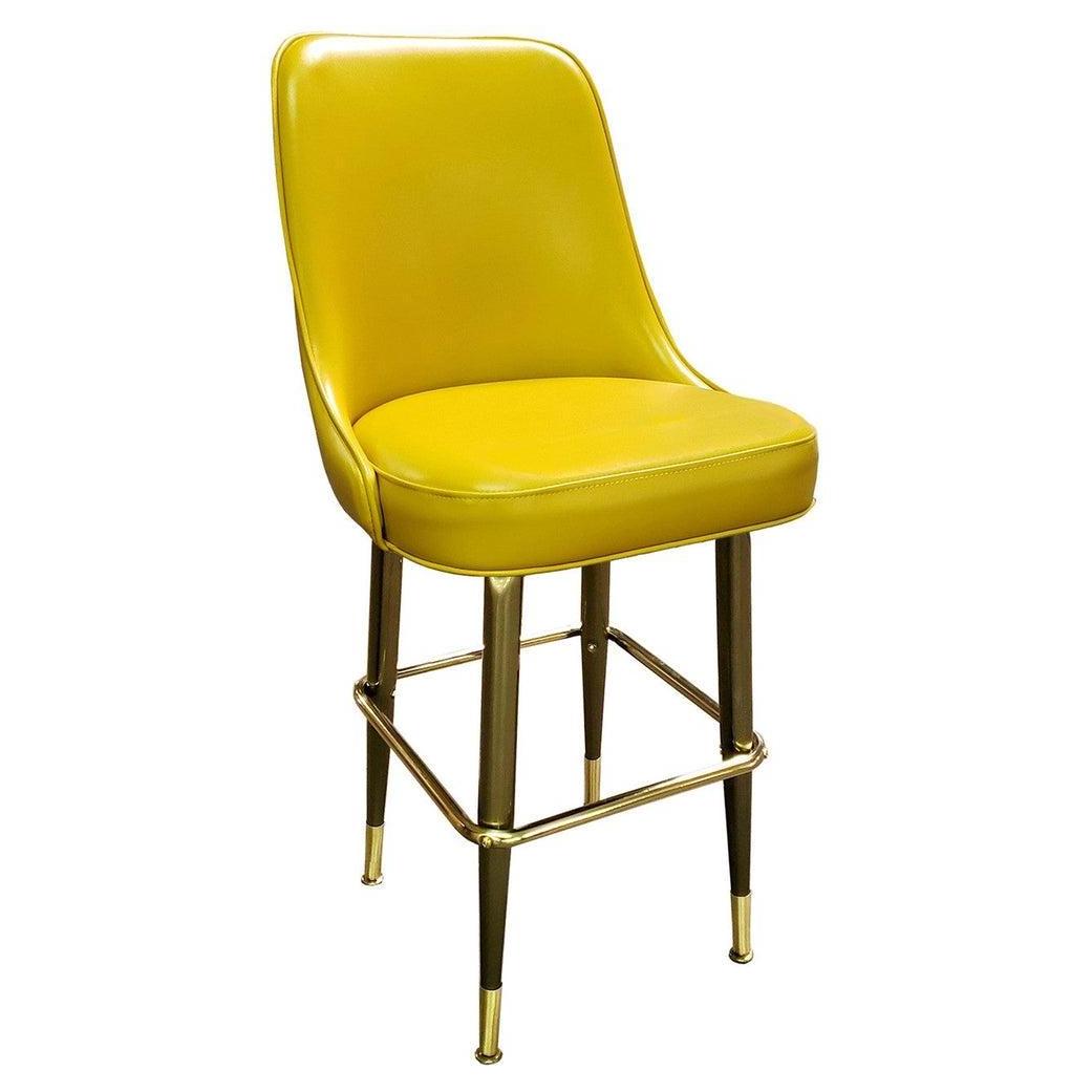 - Custom Upholstered Brass Bar Stool with Ferrules
