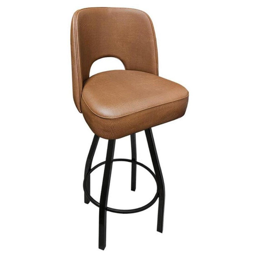 - Cut Out Back Bucket Barstool with Black Swivel Frame