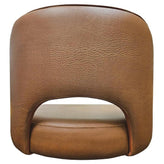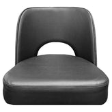 Cutout back bucket seat features a non-waterfall front & quality, fabric-backed, commercial-grade vinyl