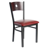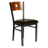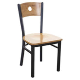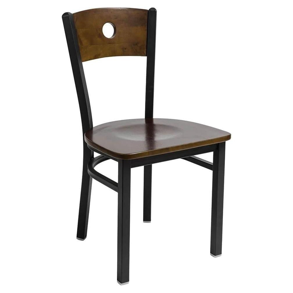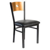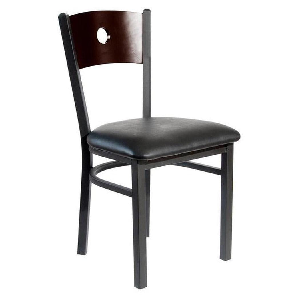 This modern Darby Circle Wood Back Side Chair features a classic design. It is available in sand black powder coat finish. Upgraded upholstery options available. It comes with a one-year manufacturer's warranty and our best price guarantee.