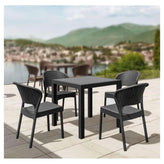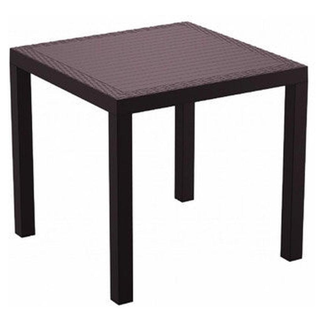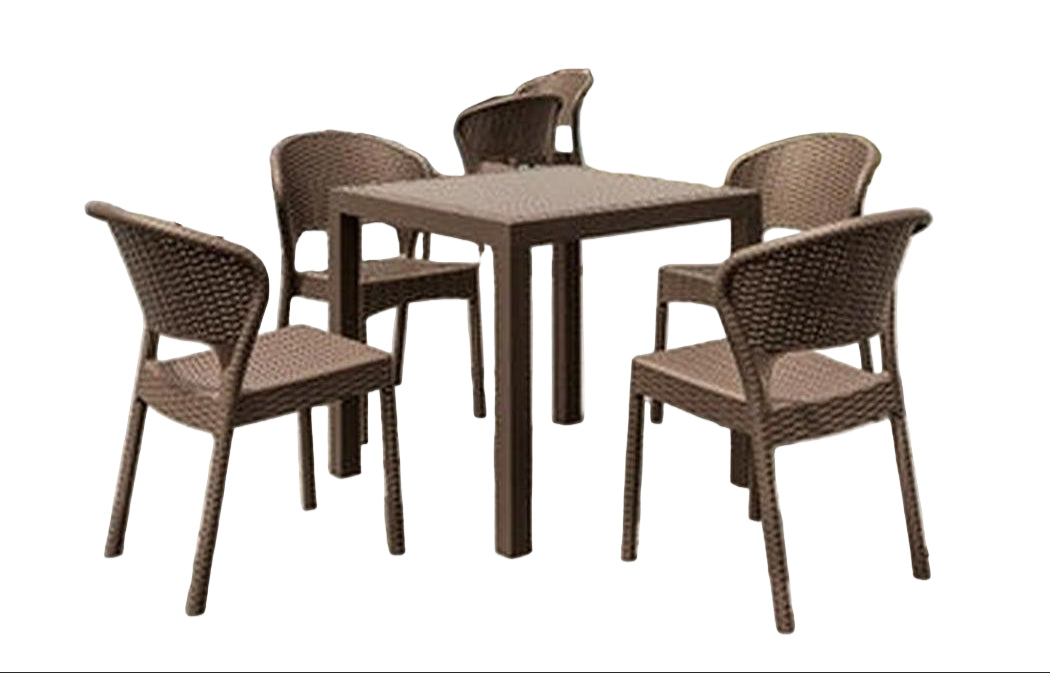 This Daytona Wickerlook Square Dining Set 5 Piece Brown with Side Chairs is a commercial grade dining set designed to last and look great in your restaurant. This dining set works great for modern design. This dining set is a stacking set and is made of highest-quality commercial grade resin designed for the premium price point. This dining set comes in brown color. This product is protected by our low price guarantee and our customer satisfaction return policy. Daytona wickerlook resin dining set with four dining chairs and one square dining table. Wickerlook resin is a natural looking un-woven one piece furniture technology. Made for commercial durability. Chairs are stackable. UV treated. Hose down for cleaning. Withstands outdoor temperatures summer and winter. Table has levelers for uneven surfaces. No metal parts. Dining set is perfect for heavy use areas. Set items are 100% resistant to outdoors, sun, snow, salt. Resin is virtually maintenance free. |
