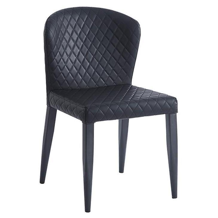 - Diamond Pattern Stitched Metal Side Chair with Black Vinyl Seat