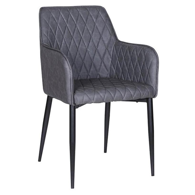- Diamond Pattern Stitched Vinyl Seat in Dark Grey Black Steel Armchair