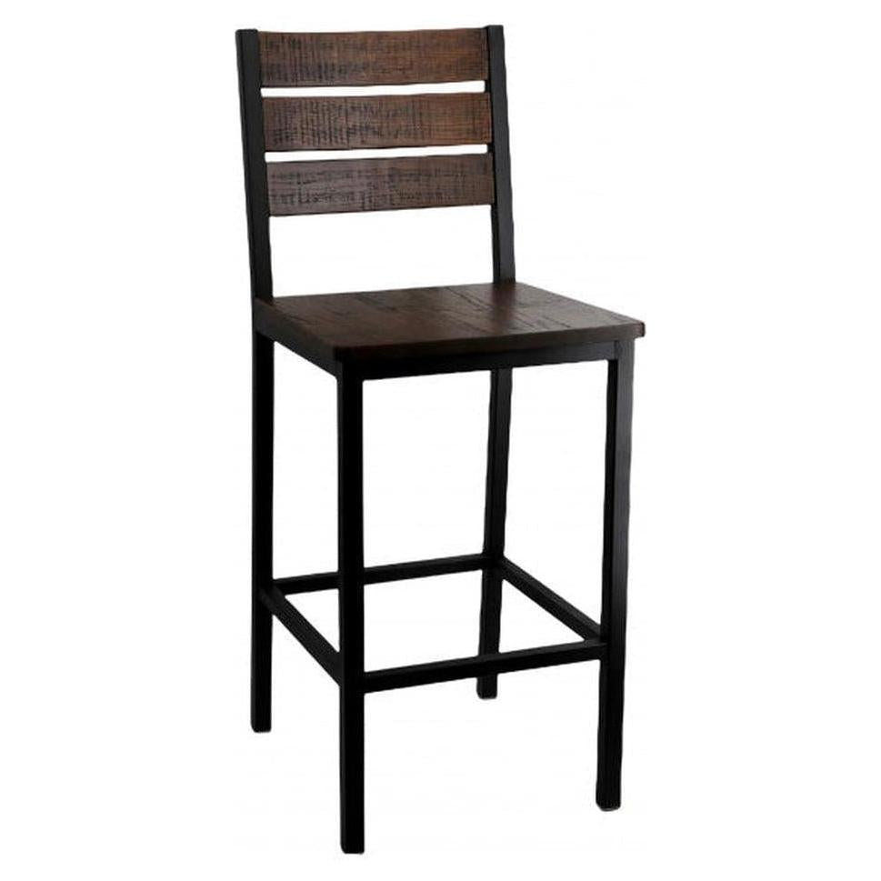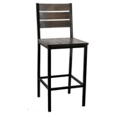 - Distressed Slat Back Wood Bar Stool with Black Metal Frame