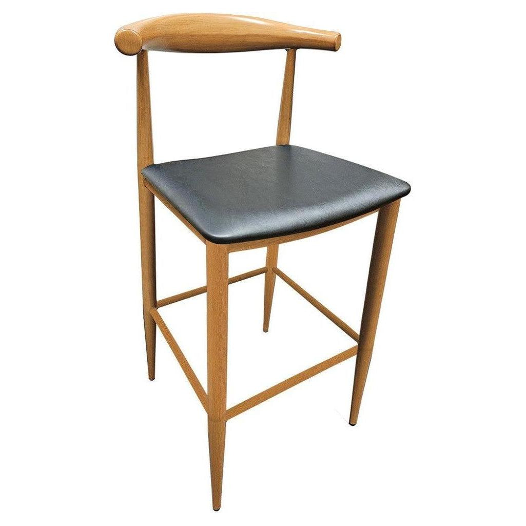 - Elbow Series Metal Faux Natural Finish Wood Frame Bar Stool with Black Vinyl Seat