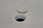 Eucalyptus & Grey Composite Rectangle Dining Table, 74" x 38" is crafted from Eucalyptus Hardwood, Poly Concrete Composite for a warm, natural look suited for commercial and residential outdoor settings.