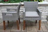 - Eucalyptus and Light Grey Outdoor Wicker Arm Chair w Handles