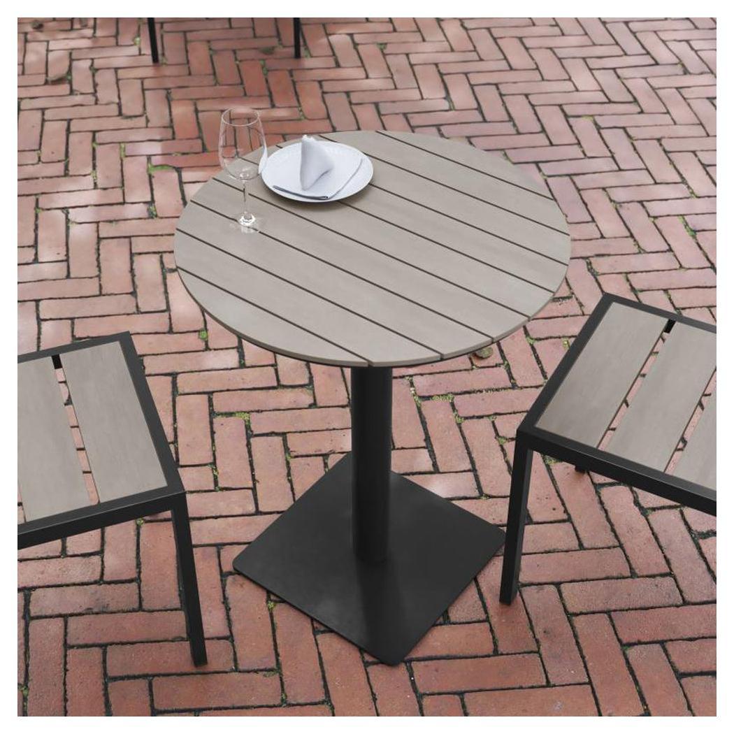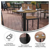 - Finch Commercial Grade Round 24" Table with Faux Teak Poly Slats and Steel Frame