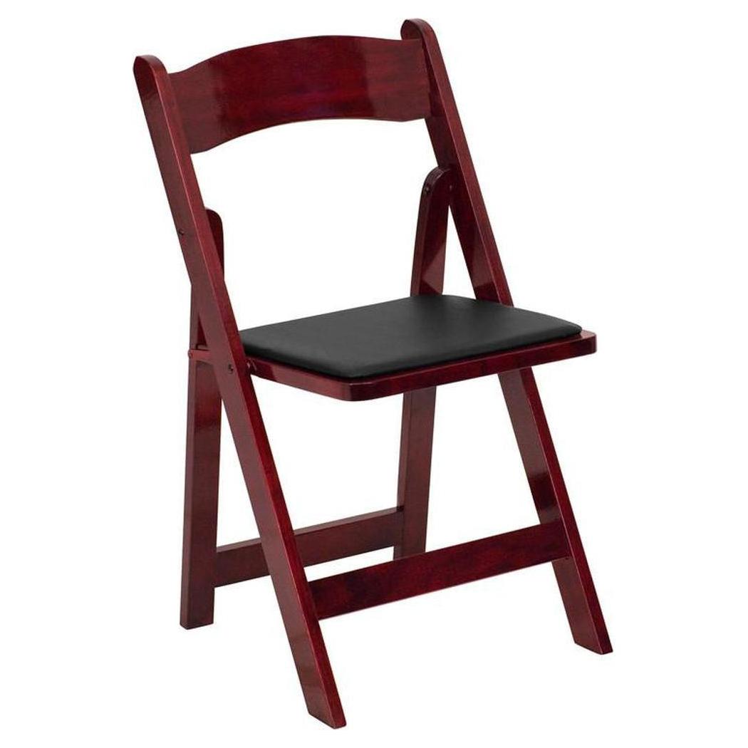 This Wood Folding Chair with Vinyl Padded Seat is a commercial grade chair designed to last and look great in your restaurant. This chair works great for traditional or rustic designs. It is made of Foam, Upholstery, Vinyl, Upholstery, and Wood designed for the budget price point. This product is protected by our low price guarantee and our customer satisfaction return policy.