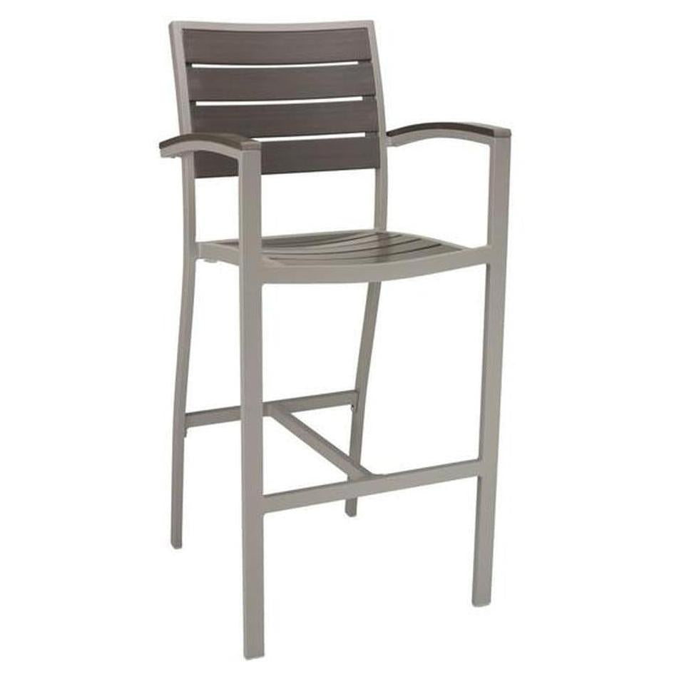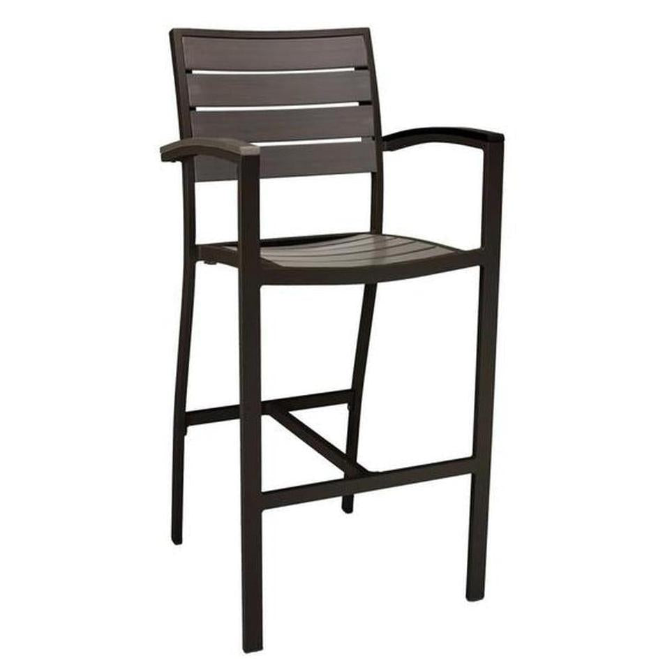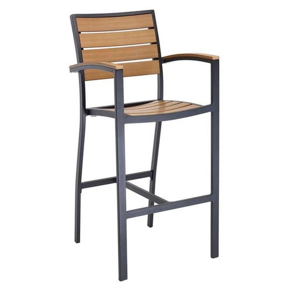 - Aluminum Outdoor Frame Barstool With Arm & Faux Teak Back