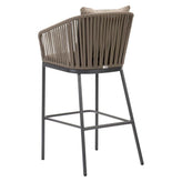 The Captiva Bar Height Stool is a commercial grade bar stool designed to look great in your foodservice location. The bar stool fits in nicely for restaurants desiring a modern design. It is made of aluminum. This product is backed by our customer satisfaction return policy and our best price guarantee. Available with Anthracite frame, Taupe PVC Straps, and Taupe cushions. Call for custom cushion colors.