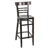 This modern Giulia Barstool features a class ladder back design. It is available in dark walnut, natural, black, stained finish & it is european manufactured. Upgraded upholstery options available. It comes with a one-year manufacturer's warranty and our best price guarantee.